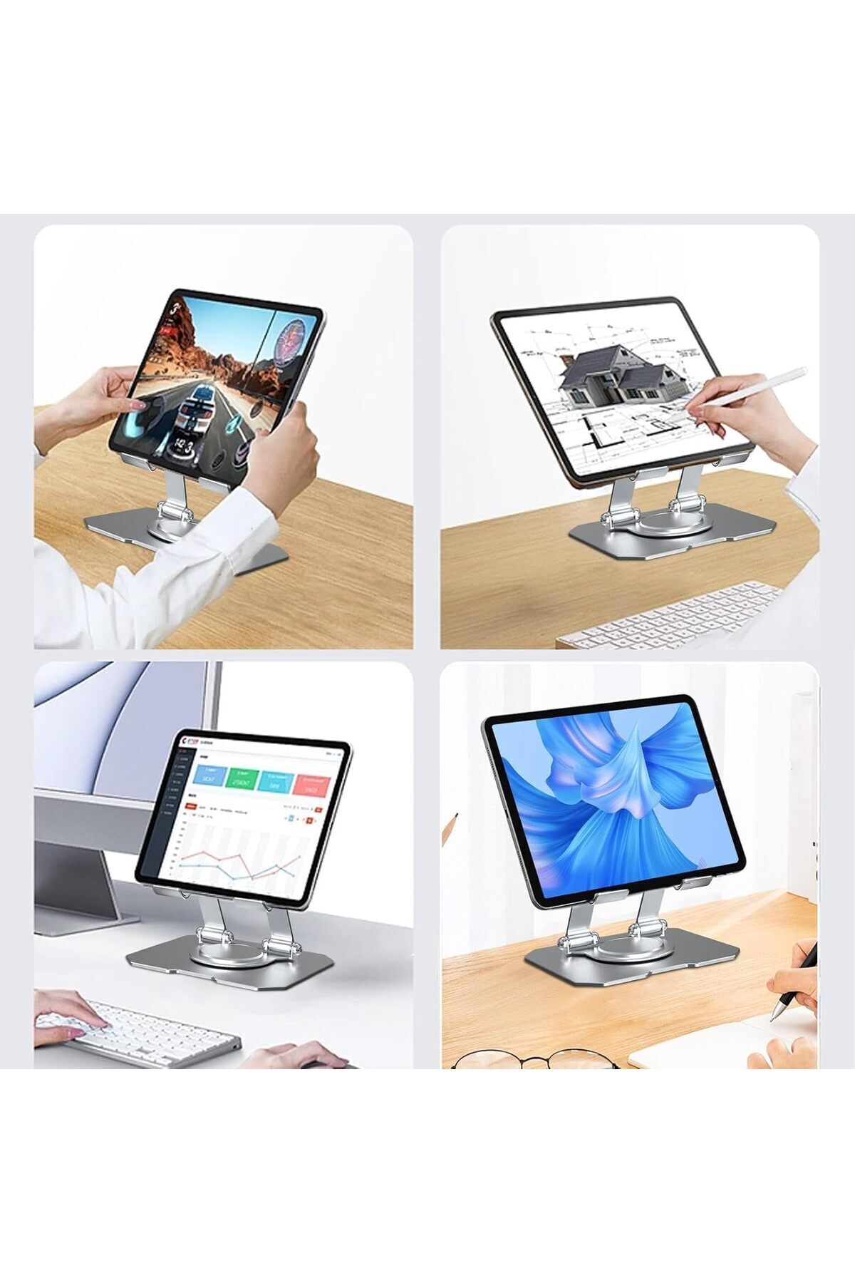Masa Üstü Metal Tablet Telefon iPad Standı Yatay Dikey 2 Kademeli Ayarlanabilir Alüminyum Yükseltici Masa Üstü Metal Tablet Telefon iPad Standı Yatay Dikey 2 Kademeli Ayarlanabilir Alüminyum Yükseltici Stand Gümüş تک سایز