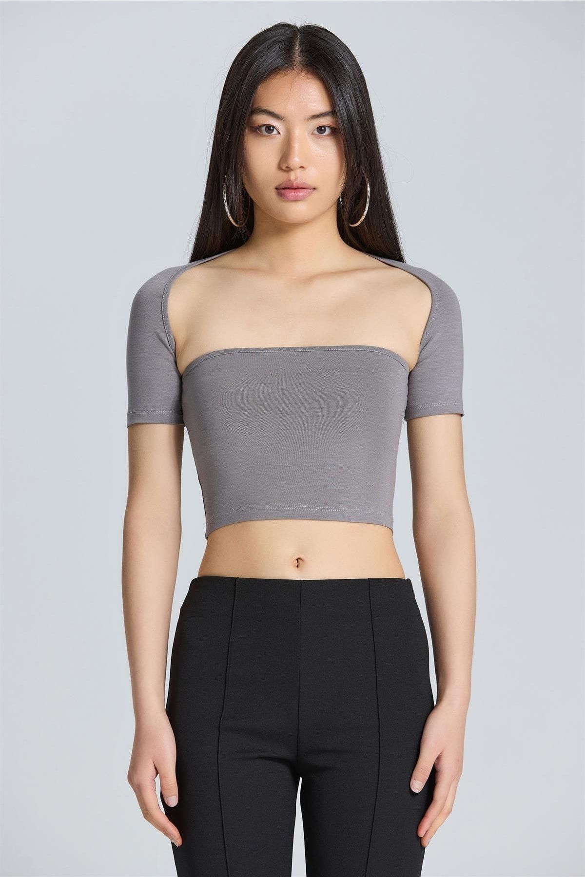 Sırtı Açık Keten Look Crop Bluz Sırtı Açık Keten Look Crop Bluz 8037 L