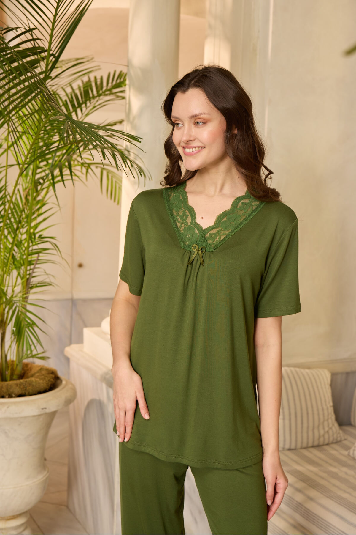 Haki Ring Viskon Kısa Kol Kapri Pijama Takım Haki Ring Viskon Kısa Kol Kapri Pijama Takım 3401 2XL