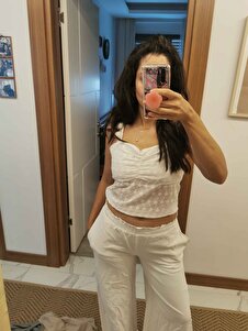 Gül Askı Detaylı Bluz %60 Pamukludur Gül Askı Detaylı Bluz %60 Pamukludur MGM-BÜZGÜ-GÜLLÜ XL