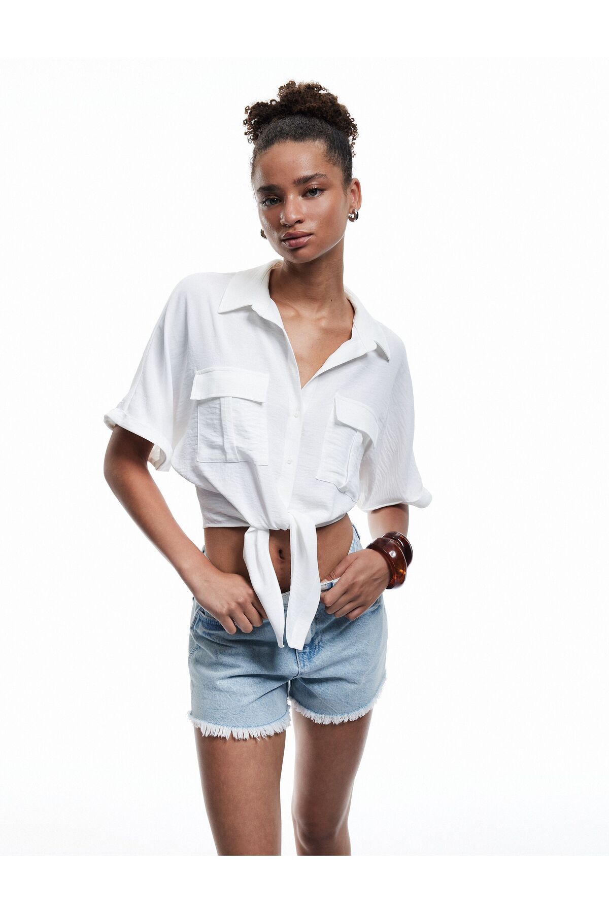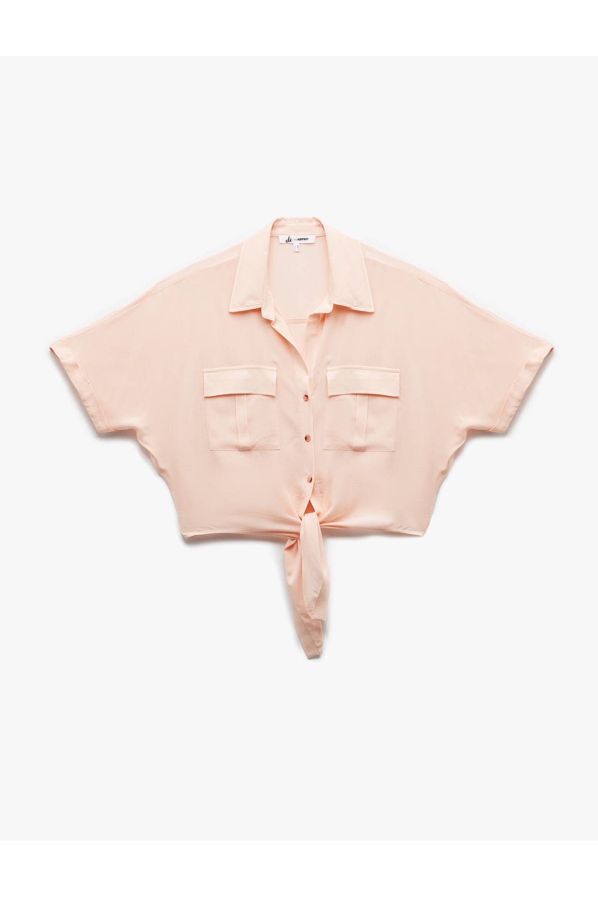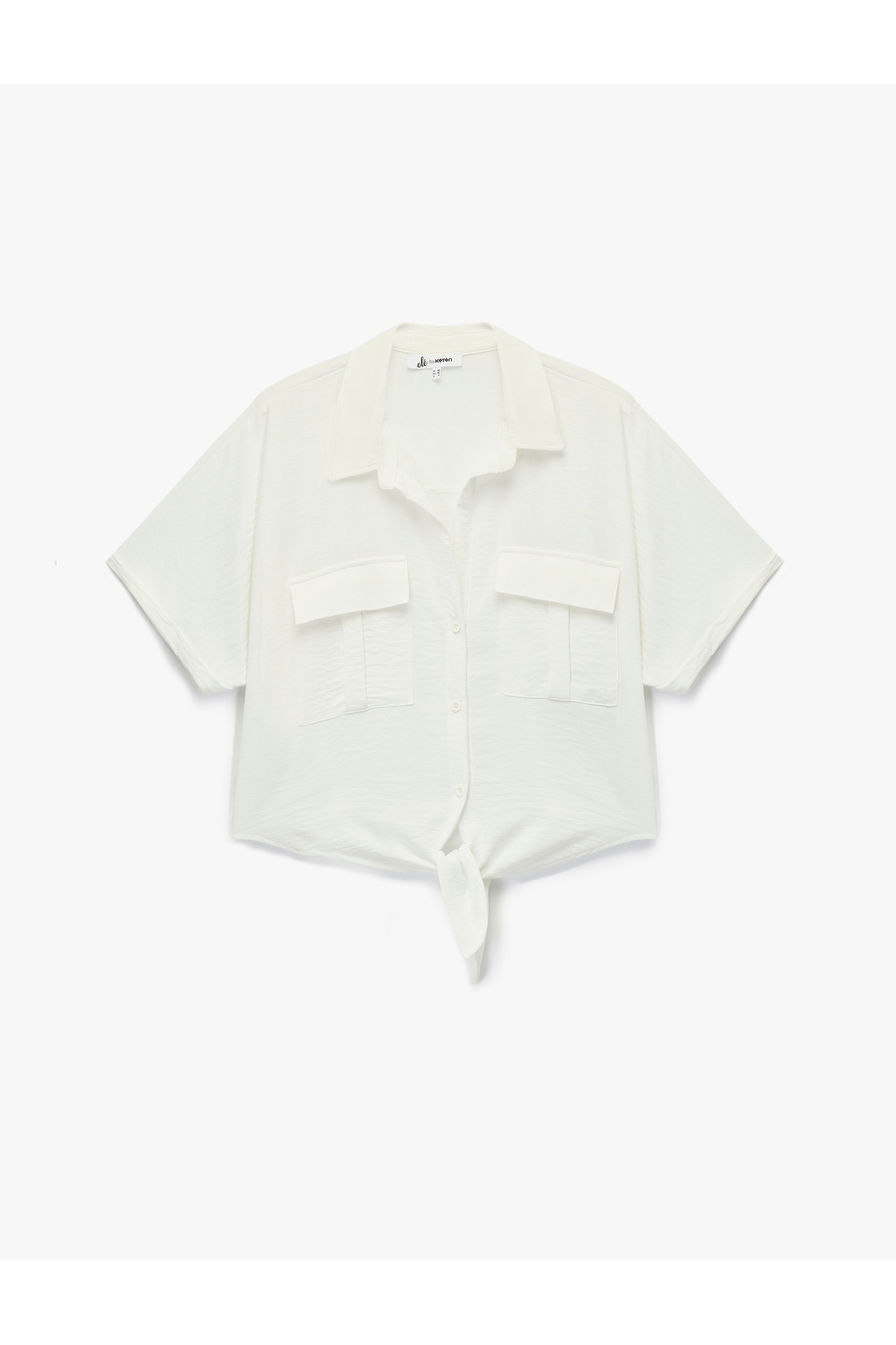 Kısa Kollu Gömlek Yaka Bağlama Detaylı Cepli Düğmeli Viskon Bluz Kısa Kollu Gömlek Yaka Bağlama Detaylı Cepli Düğmeli Viskon Bluz 5SAL60197IW 40