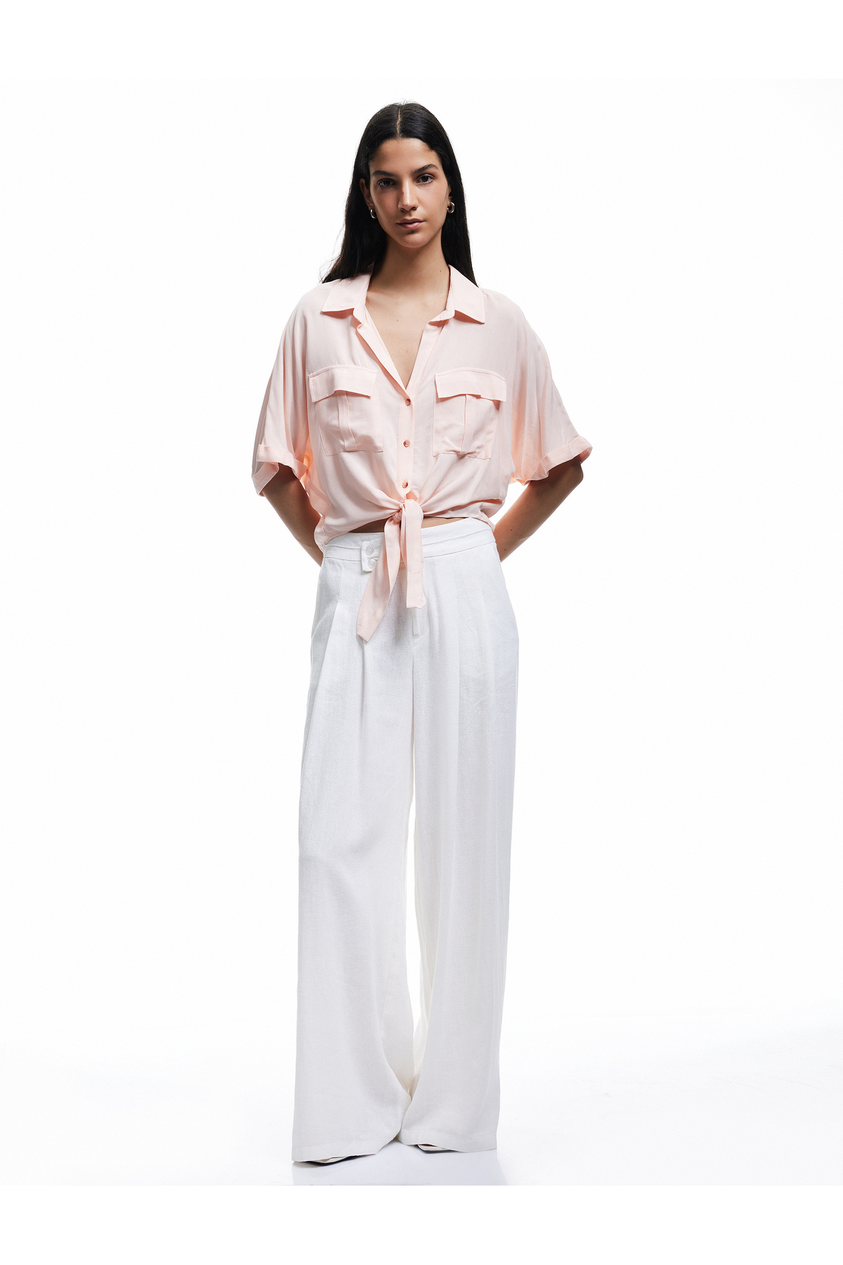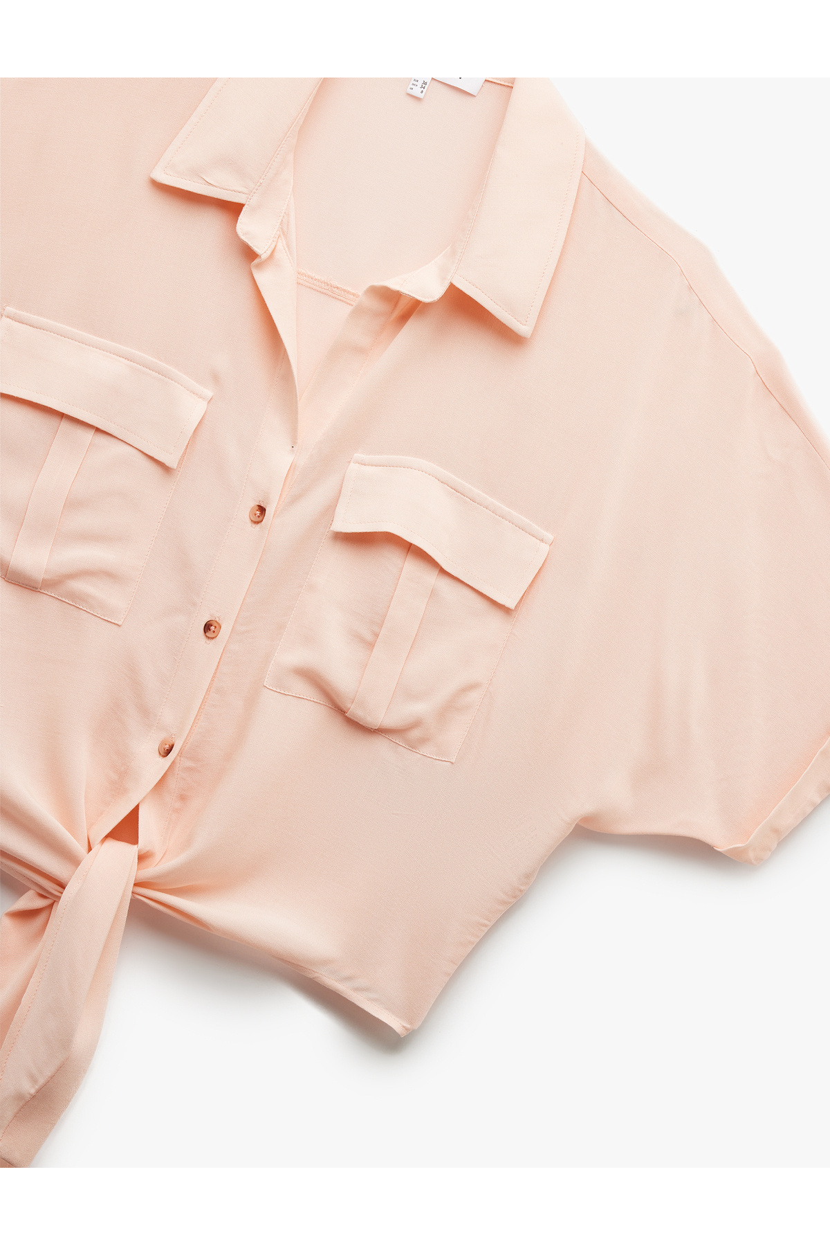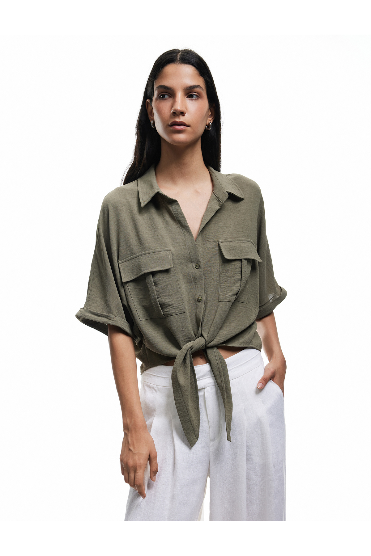 Kısa Kollu Gömlek Yaka Bağlama Detaylı Cepli Düğmeli Viskon Bluz Kısa Kollu Gömlek Yaka Bağlama Detaylı Cepli Düğmeli Viskon Bluz 5SAL60197IW 40