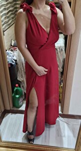 elbise çok güzel kumaşıda güzel 165cm 65 kilo için s-m aldım satıcıya sorduğumda l-xl yanıtını verdi ama ben küçüğünü aldım iyikide öyle yaptım diğer beden büyük gelirdi bu tam oldu hatta bi tık bol bile kumaşı esnek.. omuz bağlama askıları kalın bağlayınca görseldeki gibi olmuyor onu bi şekilde ayarlayacağım boyu tam babetle bi tık yere değiyor topuklu ile yukarı kalkıyor sırtı görseldeki gibi V yaka değil yuvarlak sırt kısmında 3 yerde ip çekmesi var satıcıya değişim talep ettim cevabını bekliyorum değişim olmazsa iade edip yenisini alacağım görsel ekledim ben elbiseyi sevdim düğün doğum günü normal gün her türlü kombinlenebilir rengi çok güzel hızlıca kargolandı güncelleme... değişim talebimi ikiletmeden kabul ettiler ve çok hızlı bir şekilde değişim yaptılar sorunsuz olanı yolladılar çok teşekkür ederim güvenilir satıcı güzel elbise düşünmeyin alın.. 💜