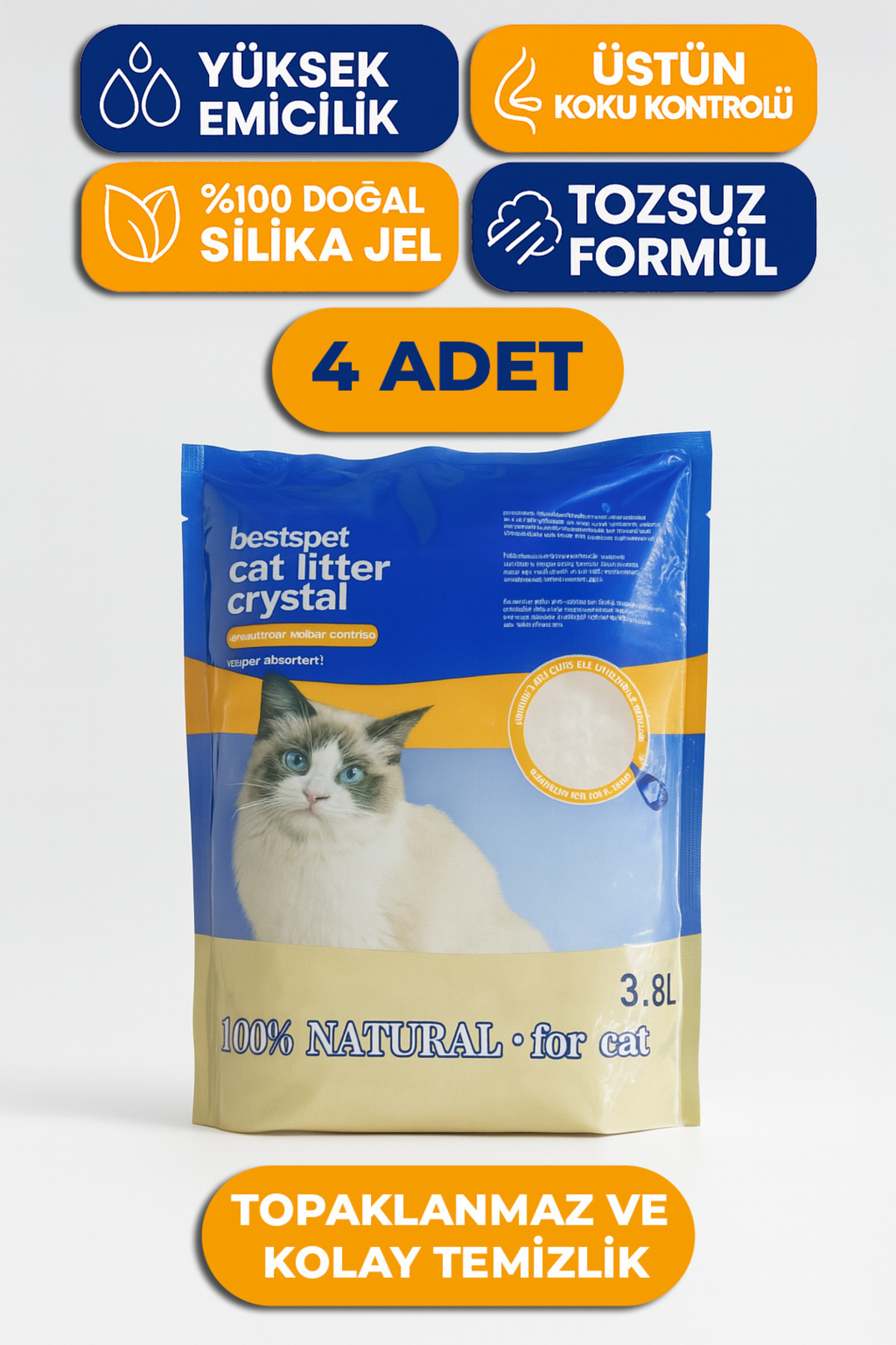 Silika Kristal Kedi Kumu 3.8 Lt X 3 Adet Doğal Tozsuz Kalın Taneli Silika Kristal Kedi Kumu 3.8 Lt X 3 Adet Doğal Tozsuz Kalın Taneli 6 تک سایز