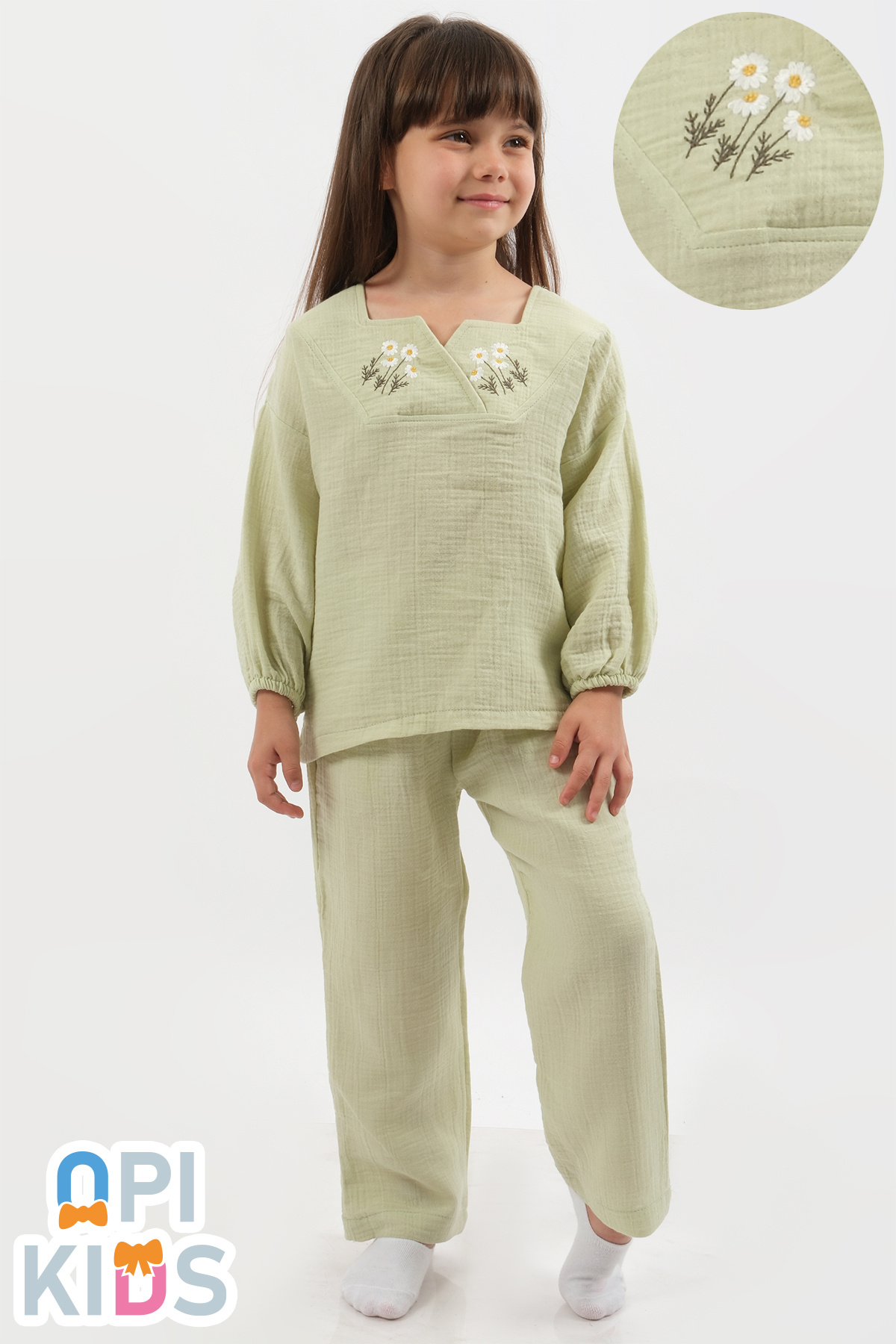 Papatya Nakış Detaylı Müslin 2Li Kız Çocuk takımı Papatya Nakış Detaylı Müslin 2Li Kız Çocuk takımı 1002 5-6 Yaş