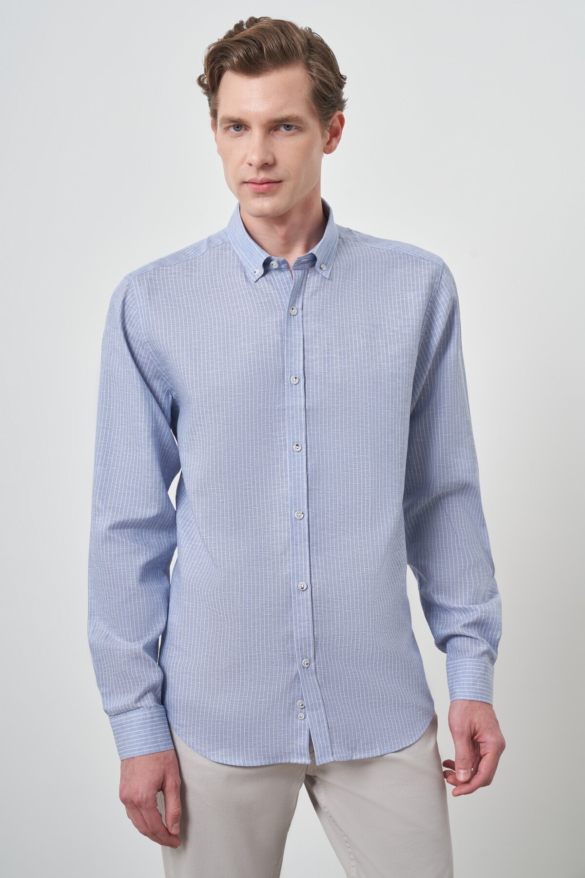 Erkek Lacivert Keten Dynamic Fit Düğmeli Yaka Gömlek Erkek Lacivert Keten Dynamic Fit Düğmeli Yaka Gömlek 25YS004017 2XL
