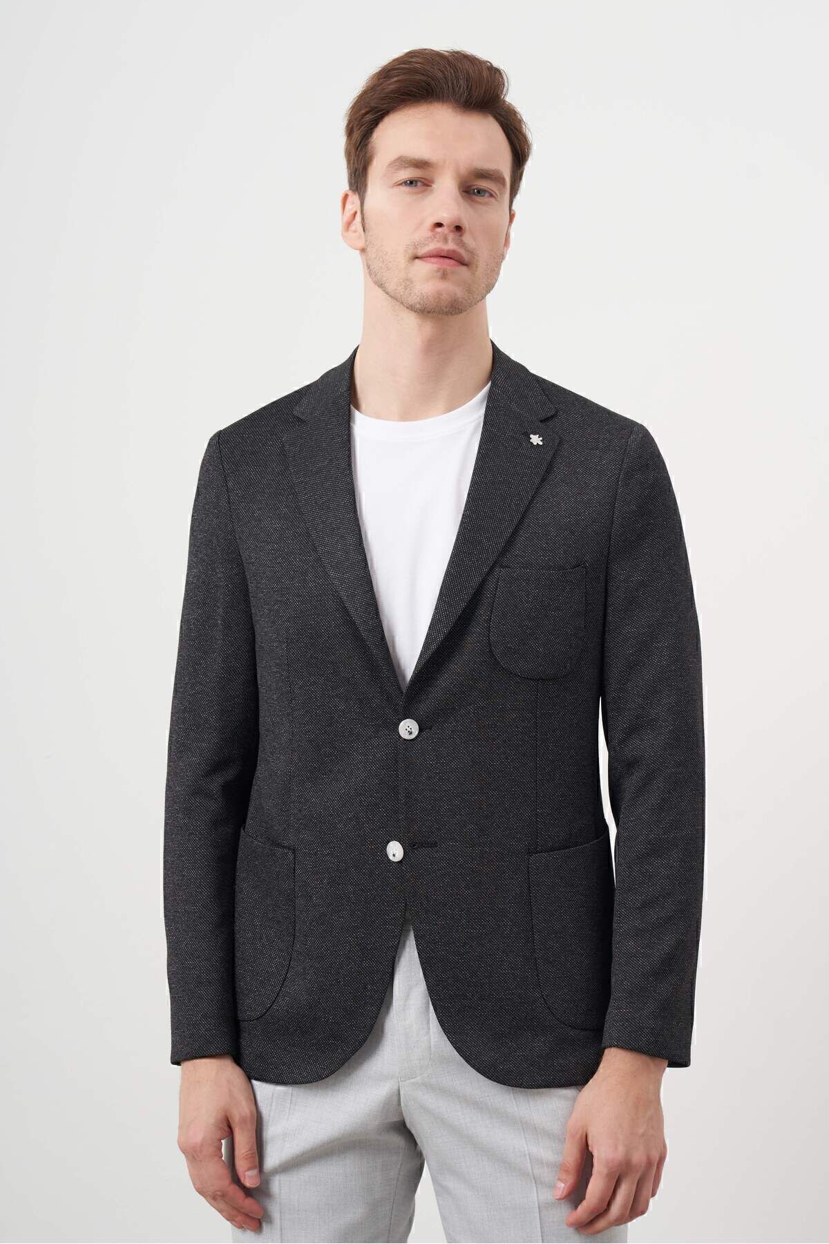 Erkek Lacivert Dokuma Slim Fit Mono Yaka Ceket Erkek Lacivert Dokuma Slim Fit Mono Yaka Ceket 25MS002016 56