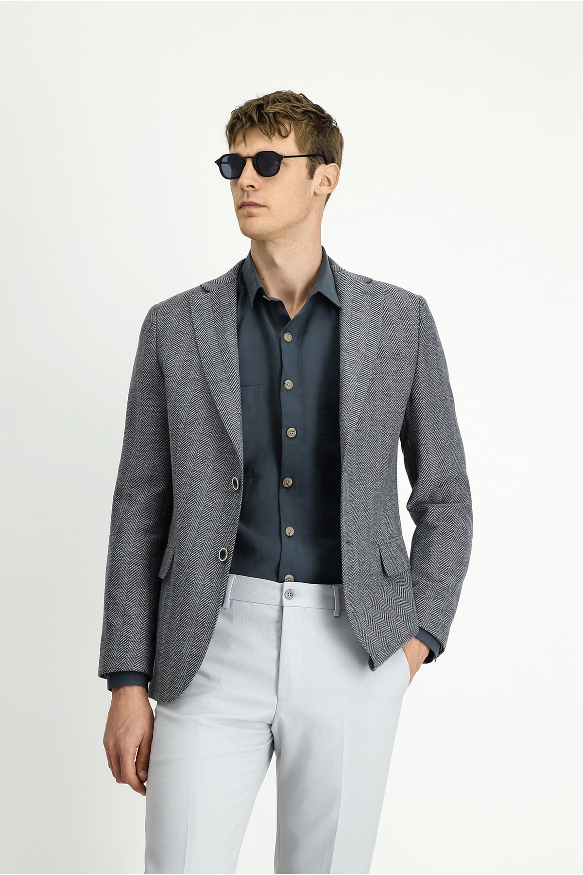 Erkek Haki Örme Slim Fit Mono Yaka Ceket Erkek Haki Örme Slim Fit Mono Yaka Ceket 25MS002020 56