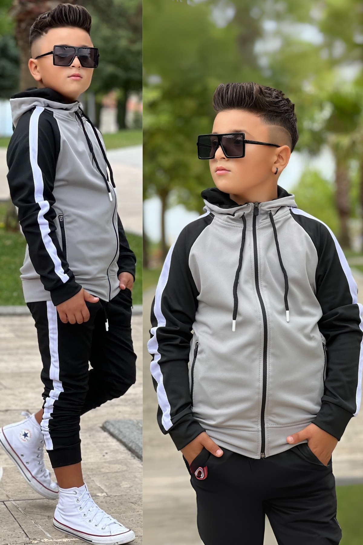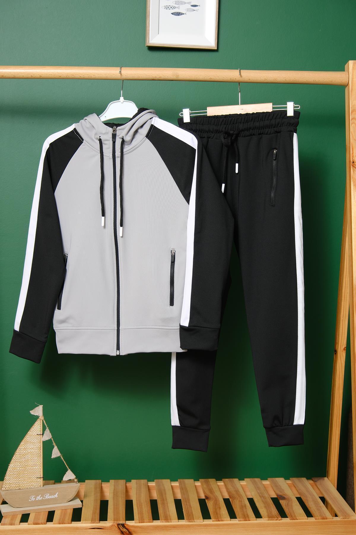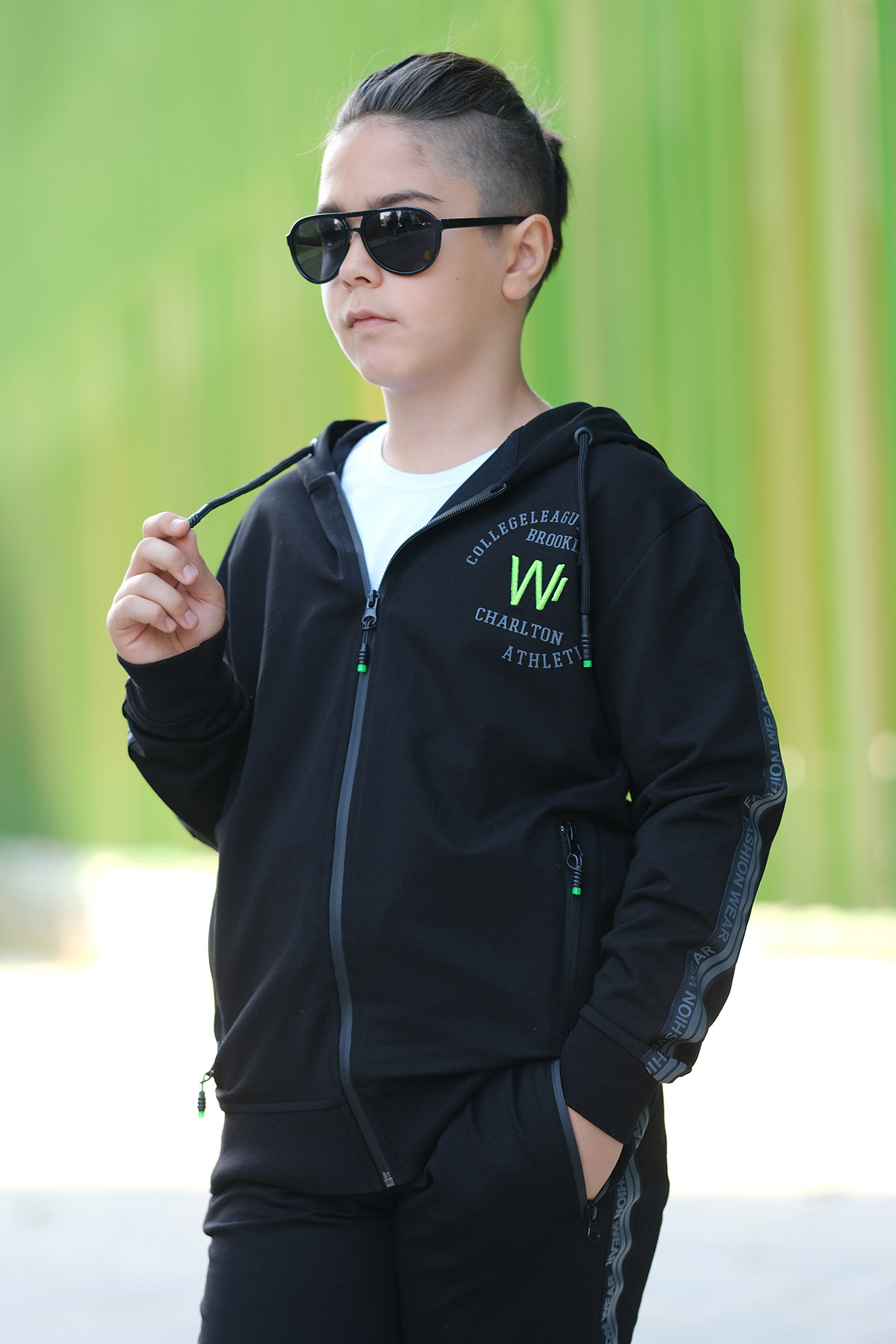 Unisex Şerit Detaylı Kapüşonlu Çocuk Eşofman Takımı Unisex Şerit Detaylı Kapüşonlu Çocuk Eşofman Takımı ESF.1903 13-14 Yaş
