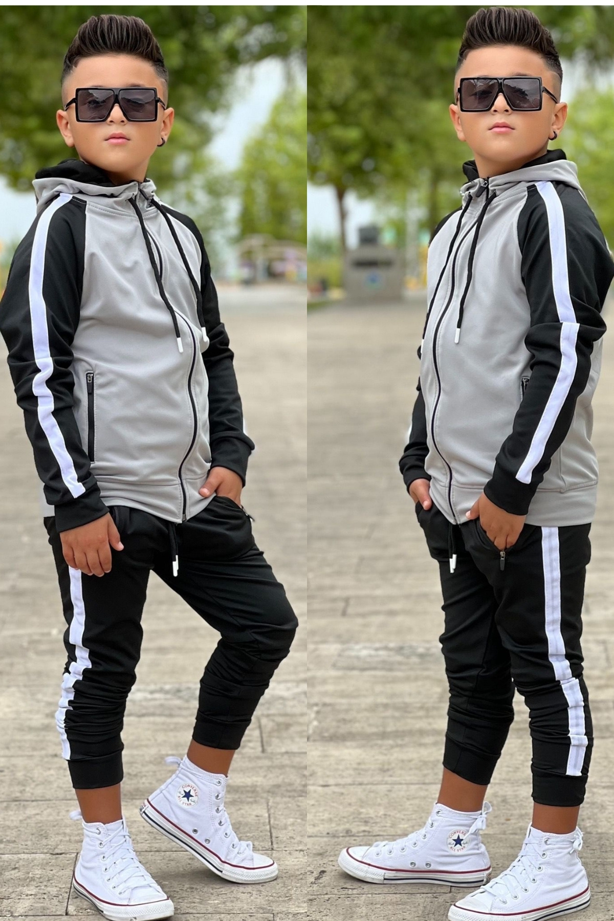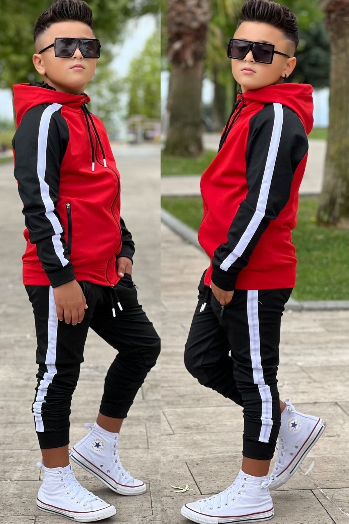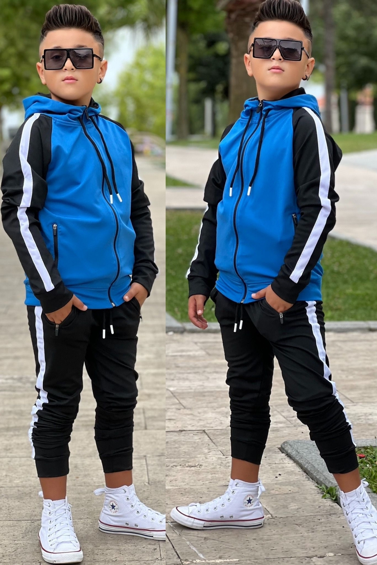 Unisex Şerit Detaylı Kapüşonlu Çocuk Eşofman Takımı Unisex Şerit Detaylı Kapüşonlu Çocuk Eşofman Takımı ESF.1903 13-14 Yaş