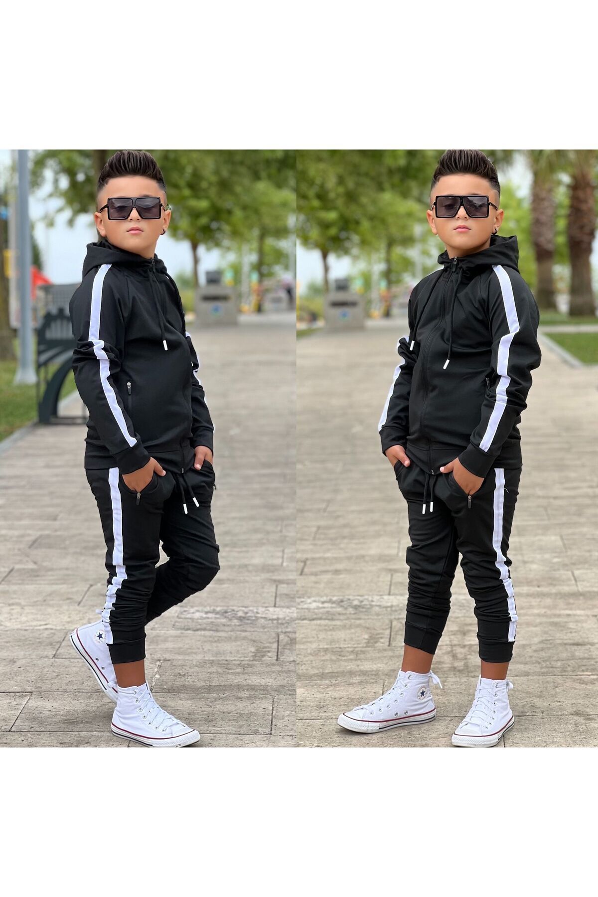 Unisex Şerit Detaylı Kapüşonlu Çocuk Eşofman Takımı Unisex Şerit Detaylı Kapüşonlu Çocuk Eşofman Takımı ESF.1903 13-14 Yaş