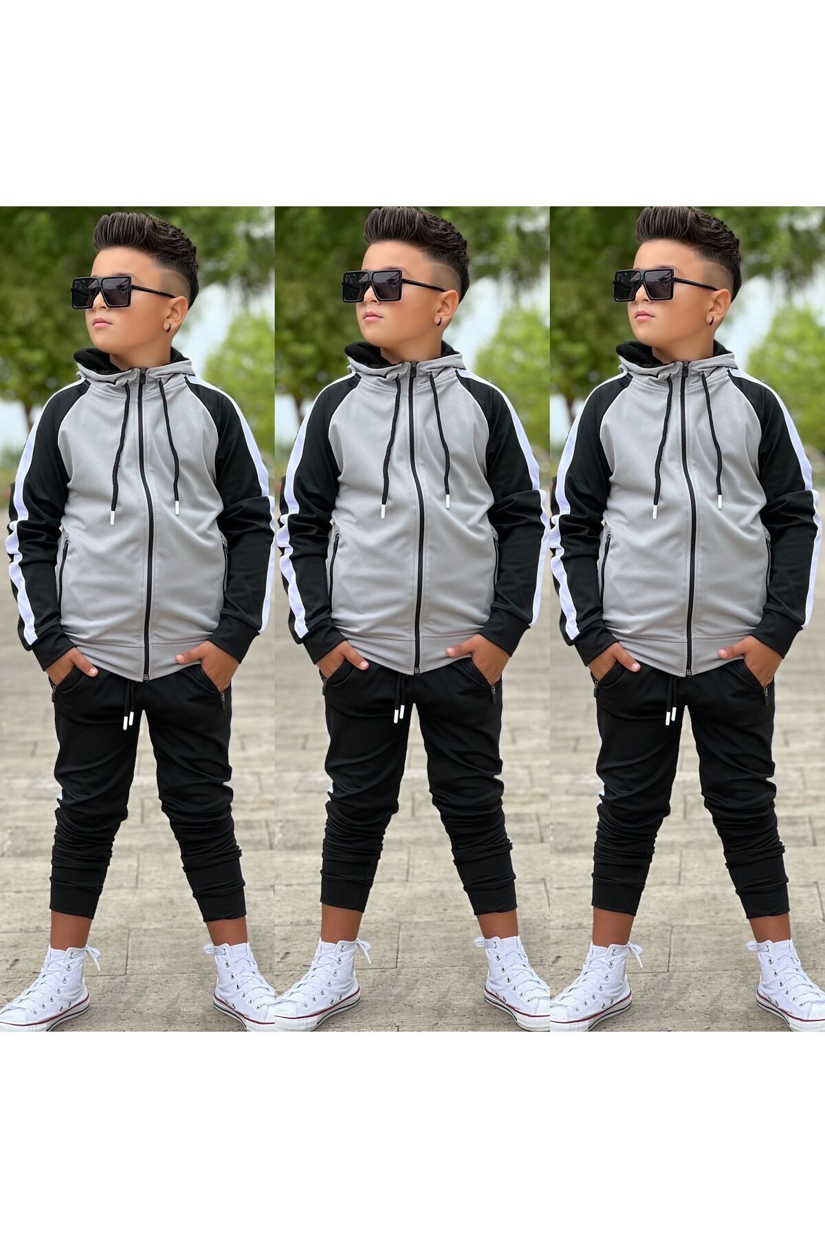 Unisex Şerit Detaylı Kapüşonlu Çocuk Eşofman Takımı Unisex Şerit Detaylı Kapüşonlu Çocuk Eşofman Takımı ESF.1903 13-14 Yaş