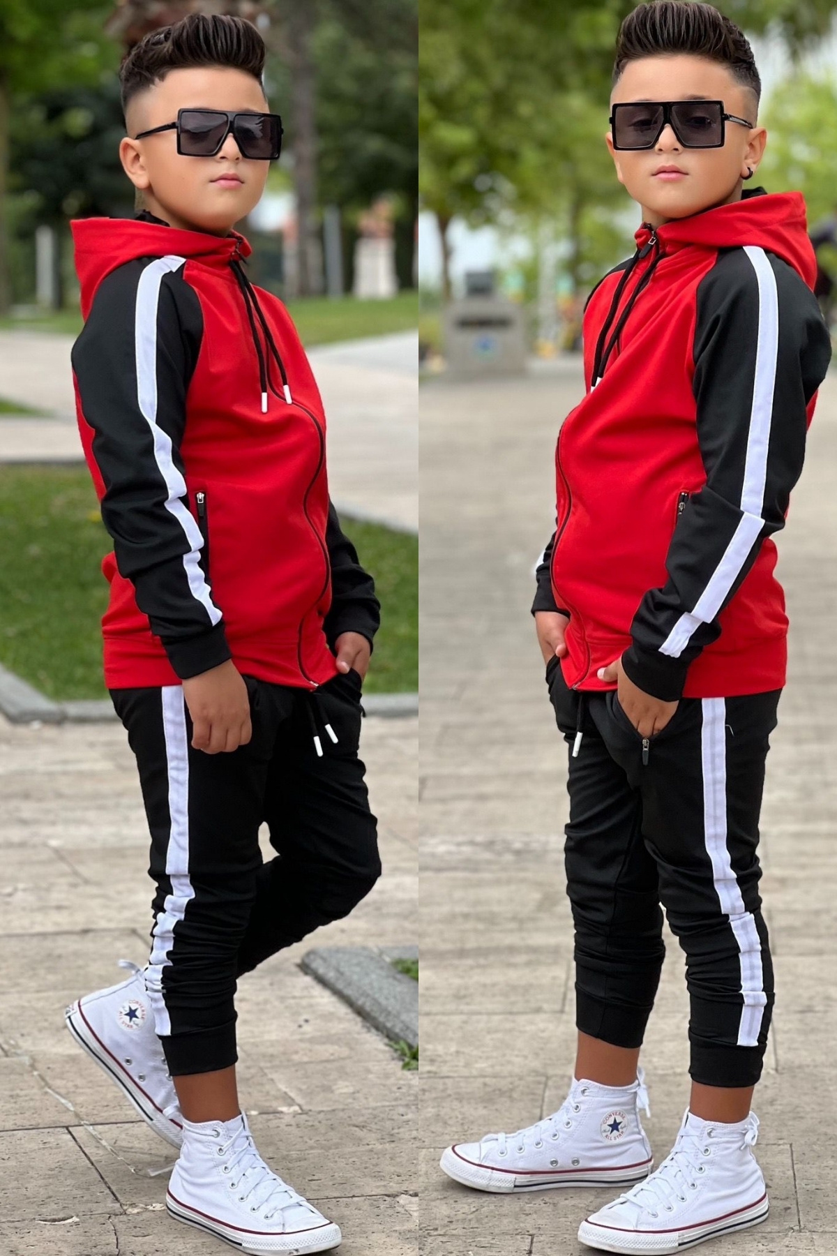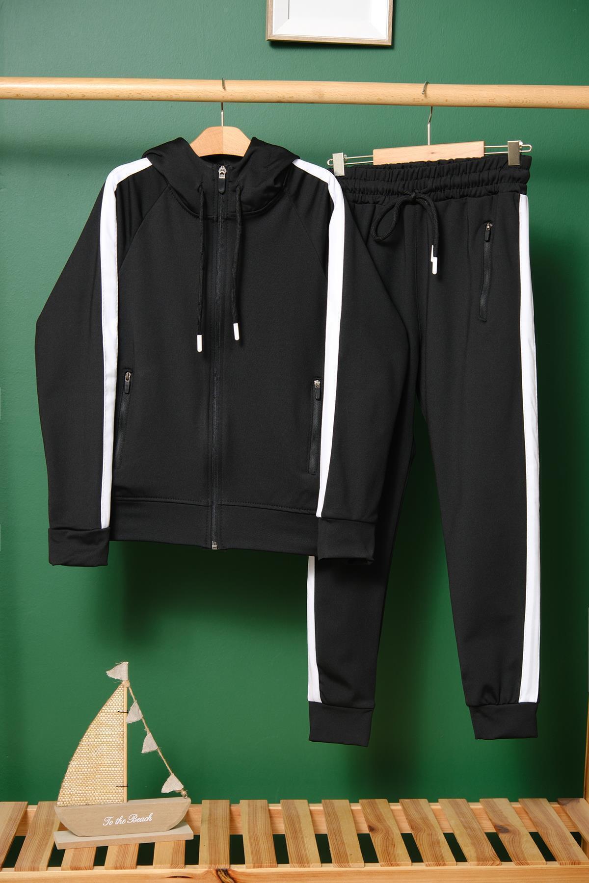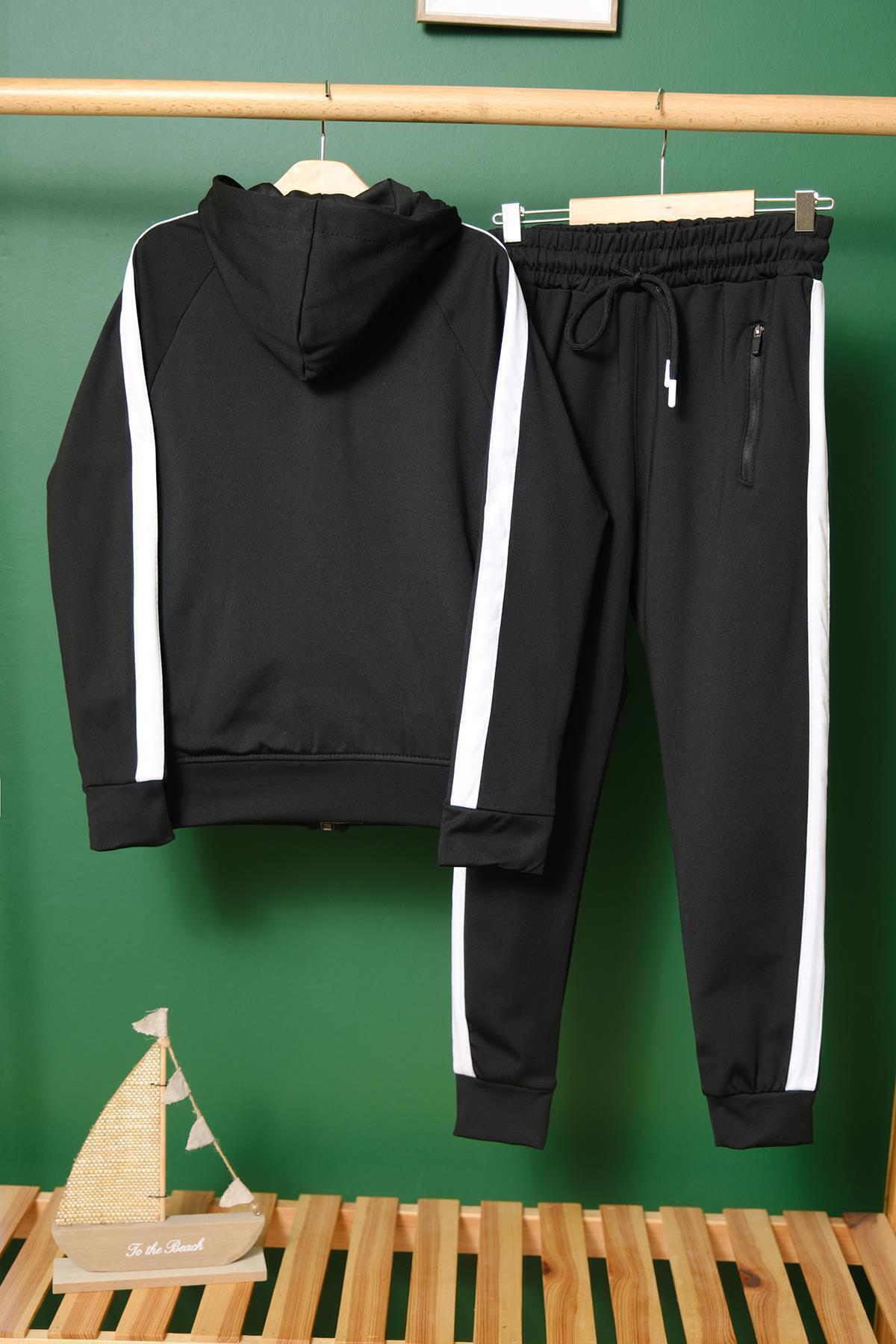 Unisex Şerit Detaylı Kapüşonlu Çocuk Eşofman Takımı Unisex Şerit Detaylı Kapüşonlu Çocuk Eşofman Takımı ESF.1903 13-14 Yaş