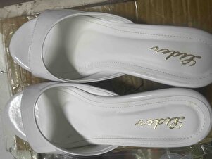 Kadın Beyaz Rugan Açık Burun Topuklu Terlik Kadın Beyaz Rugan Açık Burun Topuklu Terlik LD1549 40