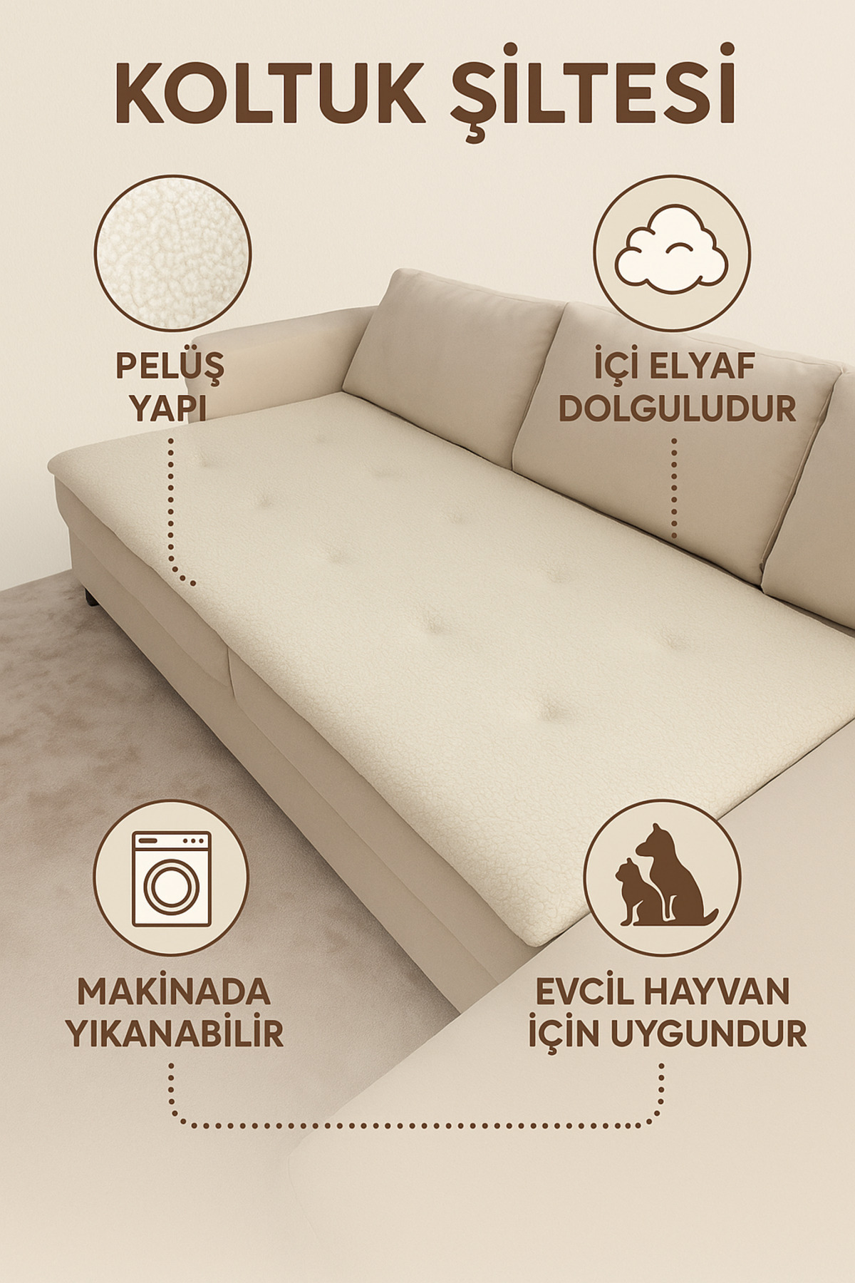Peluş Koltuk Örtüsü, Ekru Koltuk Minderi, İçi Elyaf Dolgulu Yıkanabilir Koltuk Şiltesi, 70x250 cm Peluş Koltuk Örtüsü, Ekru Koltuk Minderi, İçi Elyaf Dolgulu Yıkanabilir Koltuk Şiltesi, 70x250 cm PEKOLTUOR11 تک سایز
