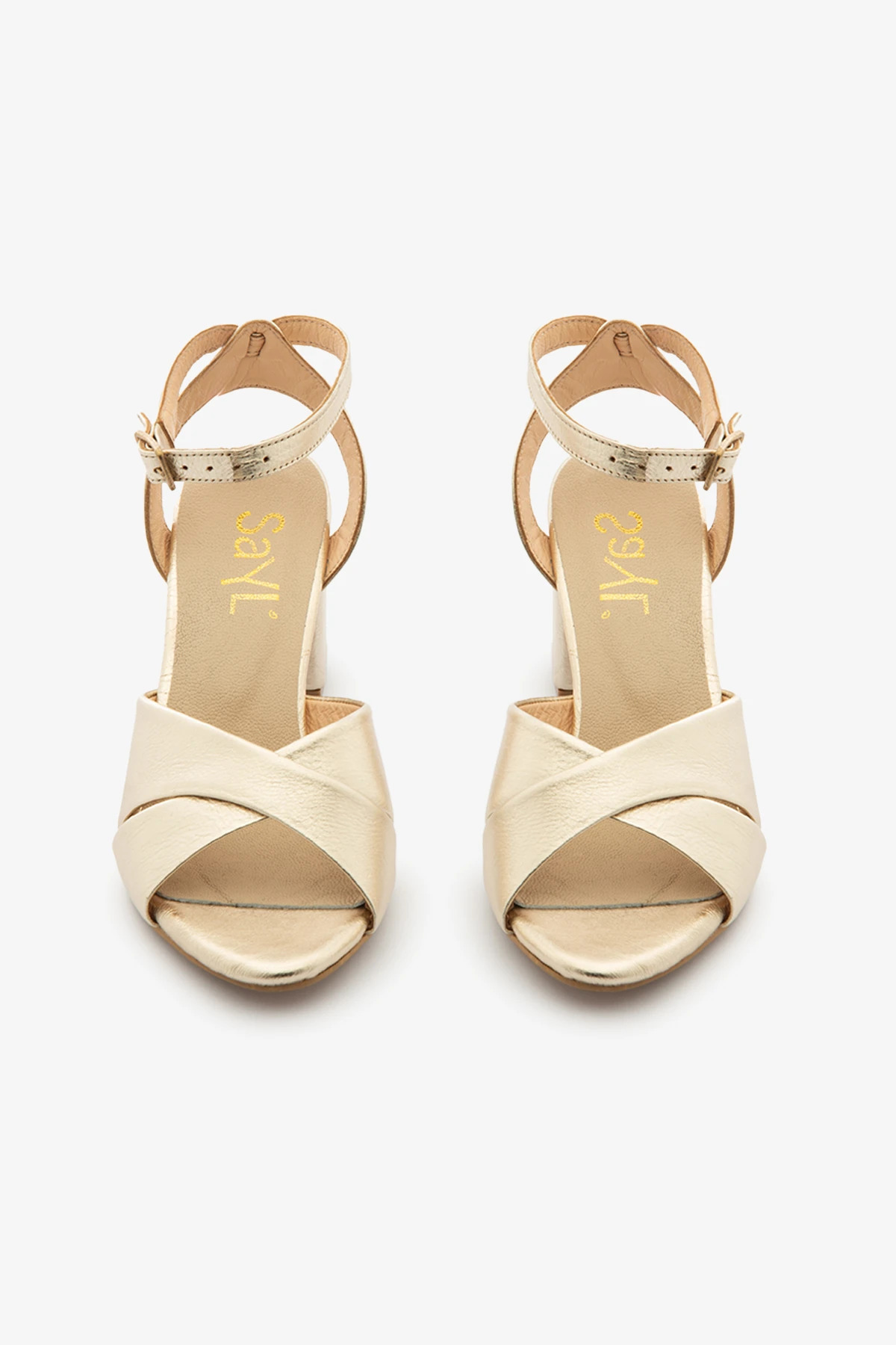 Altın Hakiki Deri Çapraz Bantlı Kalın Topuklu Kadın Sandalet Altın Hakiki Deri Çapraz Bantlı Kalın Topuklu Kadın Sandalet 191017 40