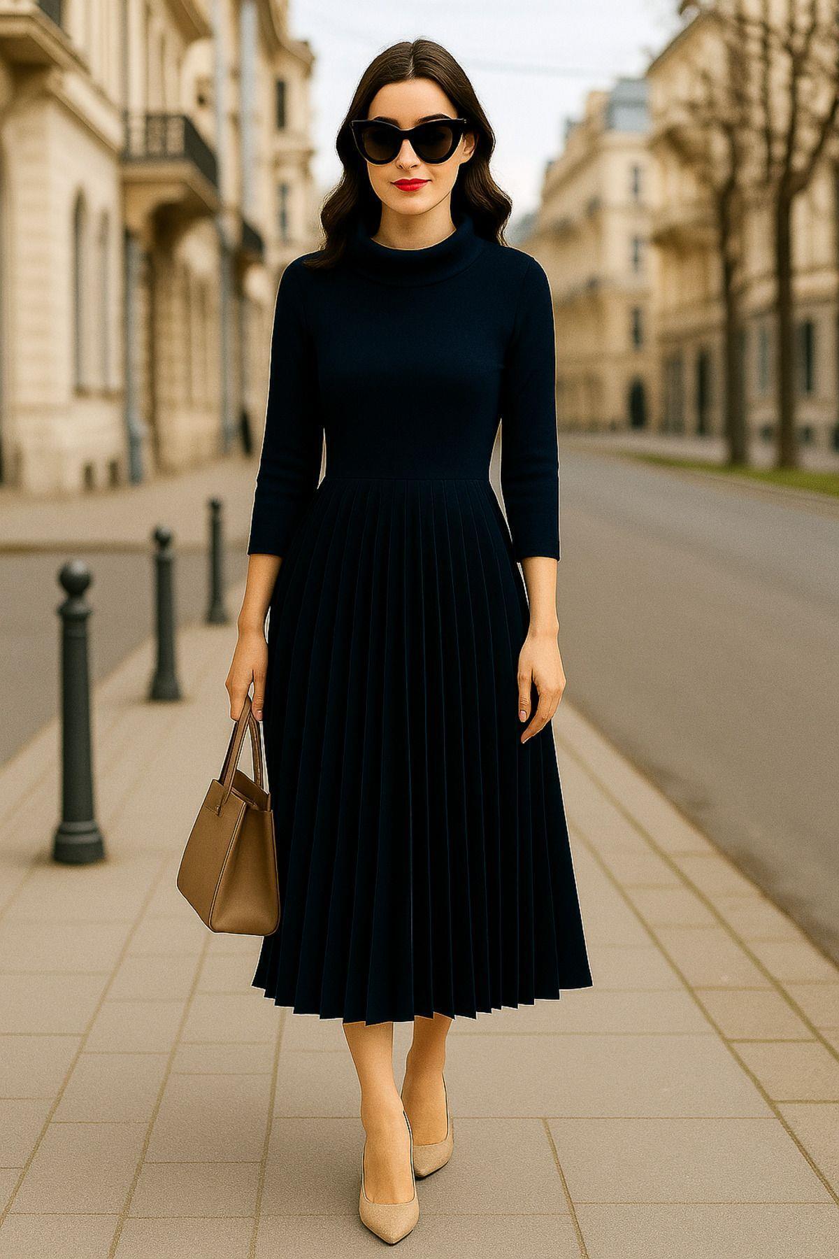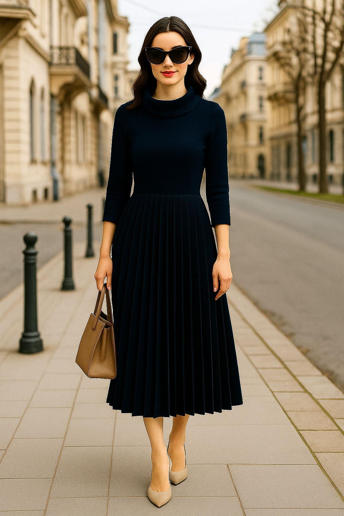 Kadın Siyah Pileli Astarsız Midi Elbise - Boğazlı, Uzun Kollu, Şık ve Rahat Tasarım Kadın Siyah Pileli Astarsız Midi Elbise - Boğazlı, Uzun Kollu, Şık ve Rahat Tasarım RİCHPE10 XXS
