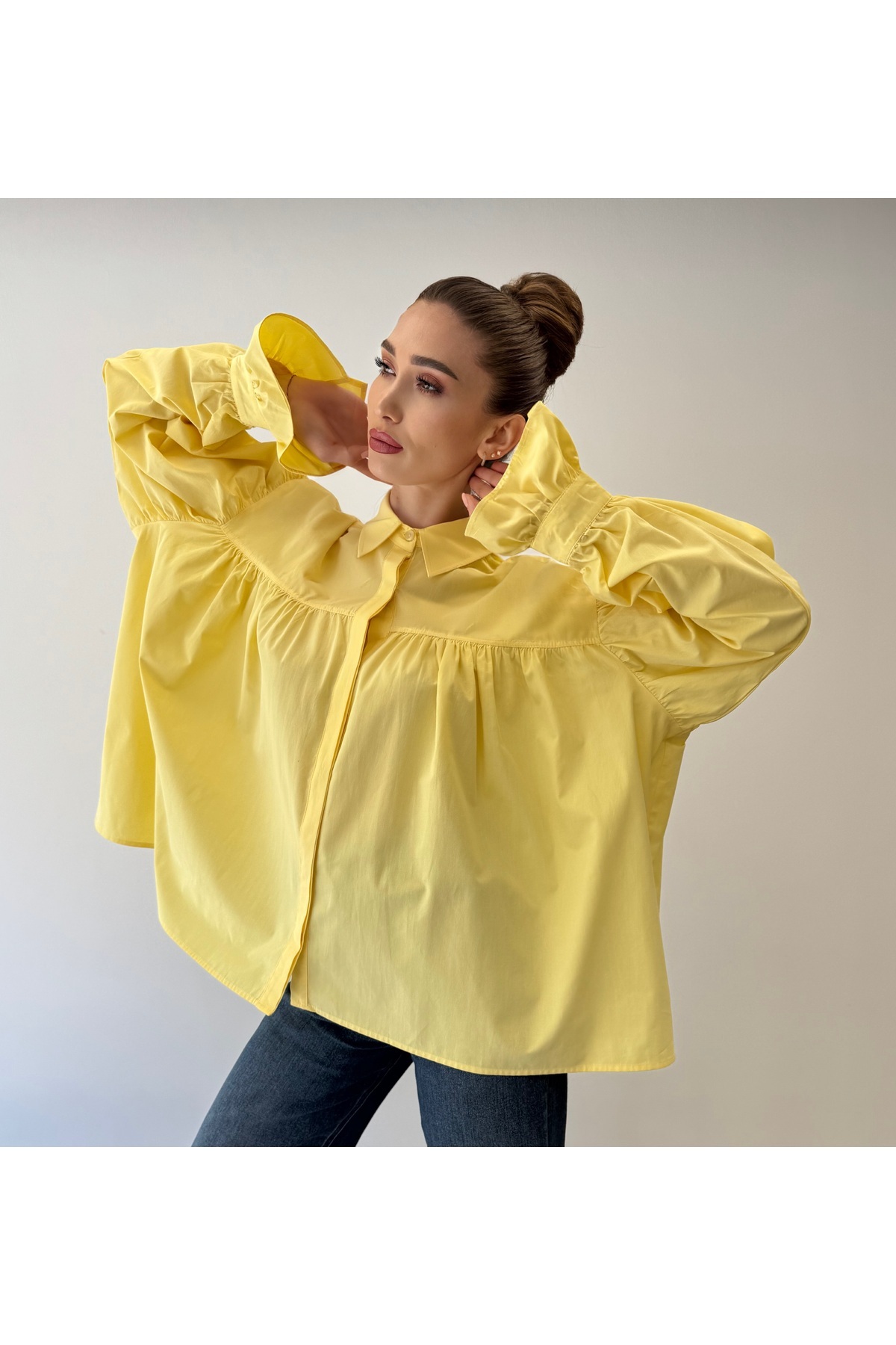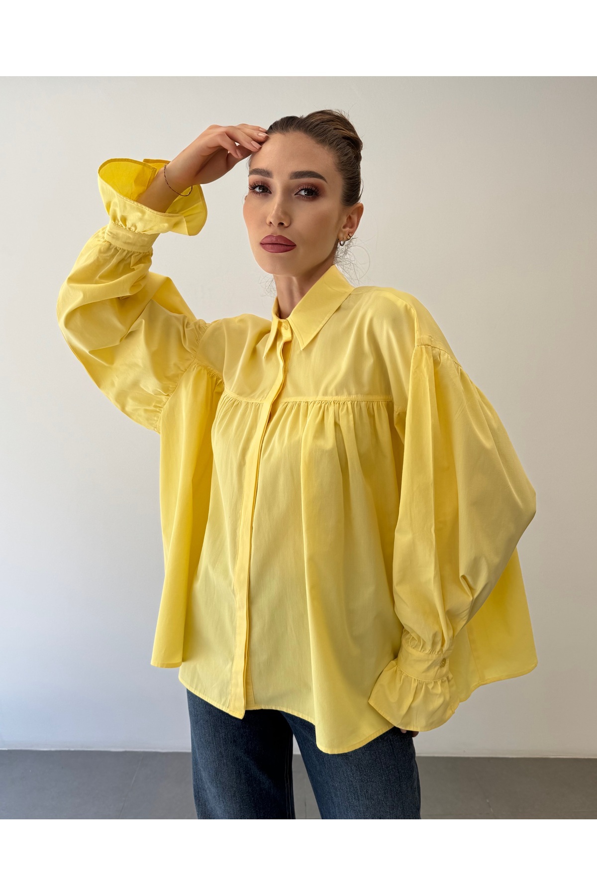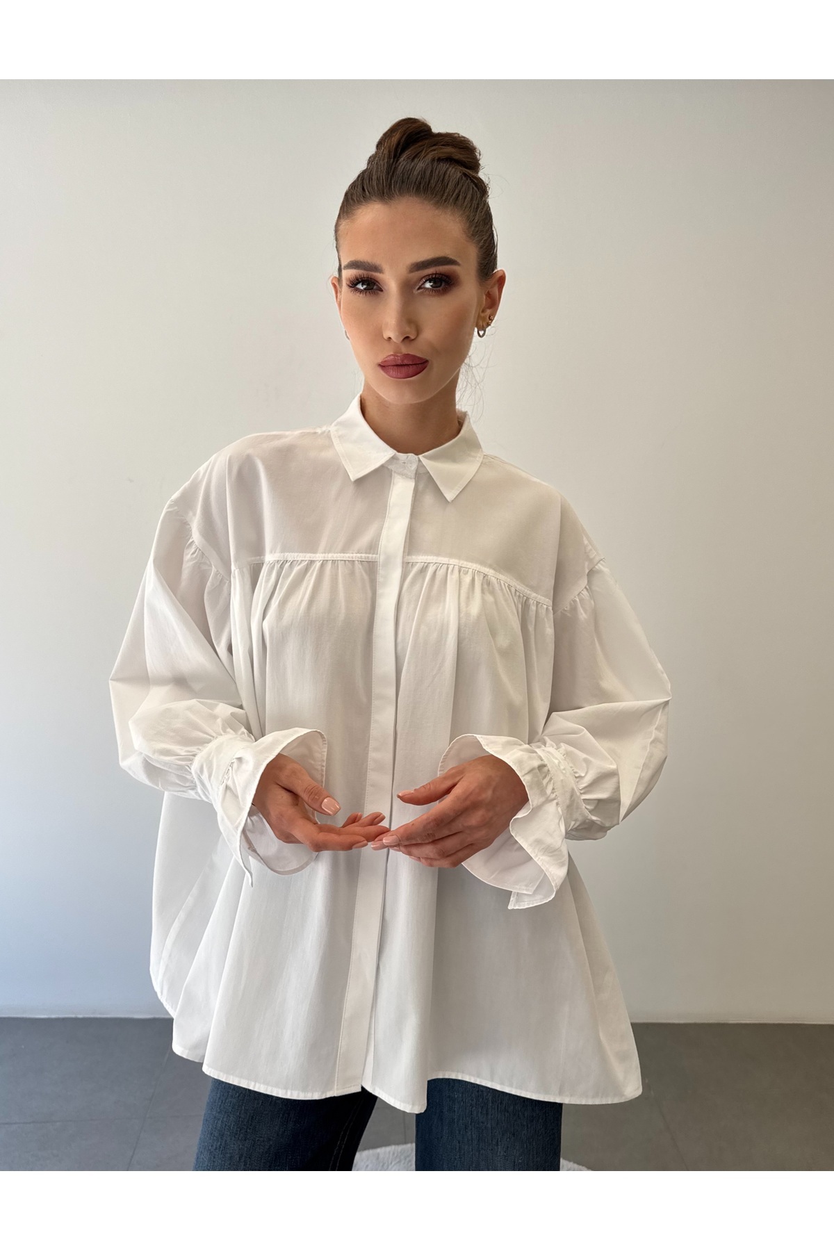Büzgülü Geniş Kol Oversize Tasarım Gömlek Büzgülü Geniş Kol Oversize Tasarım Gömlek ossons746529 L
