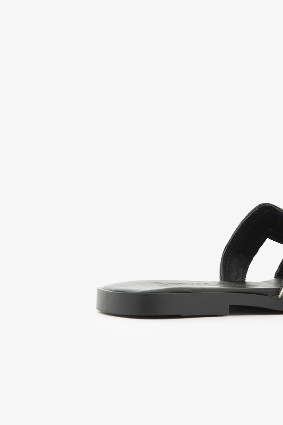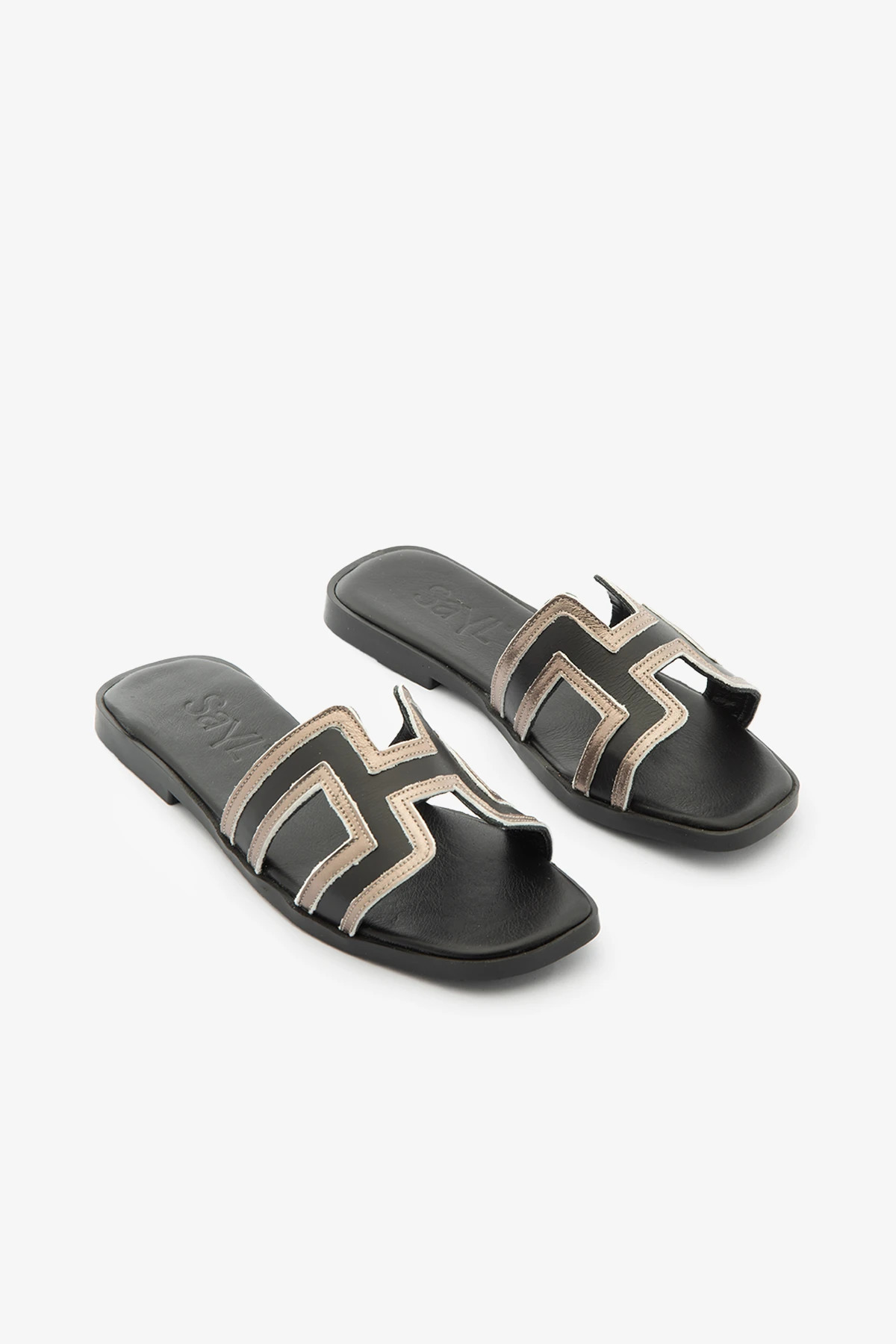 Siyah Hakiki Deri H-Bantlı Düz Kadın Terlik Siyah Hakiki Deri H-Bantlı Düz Kadın Terlik 191010 40