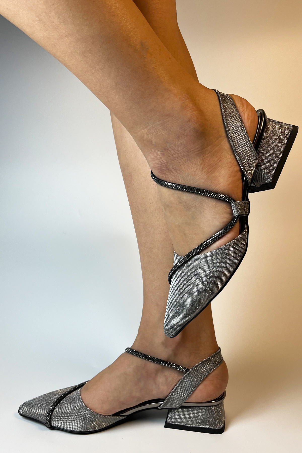 Kadın Biyeli Alçak Topuklu Taşlı Simli Rose Babet Abiye Ayakkabı Kadın Biyeli Alçak Topuklu Taşlı Simli Rose Babet Abiye Ayakkabı MS011 41