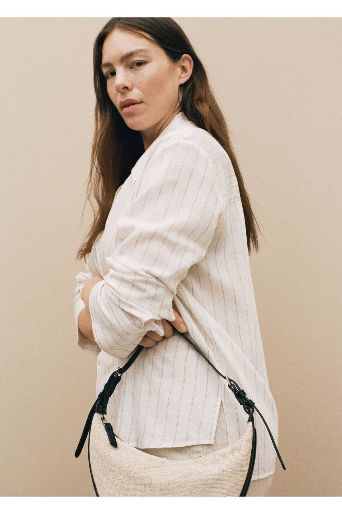 Mini oval keten karışımı omuz çantası Mini oval keten karışımı omuz çantası 87007169 تک سایز