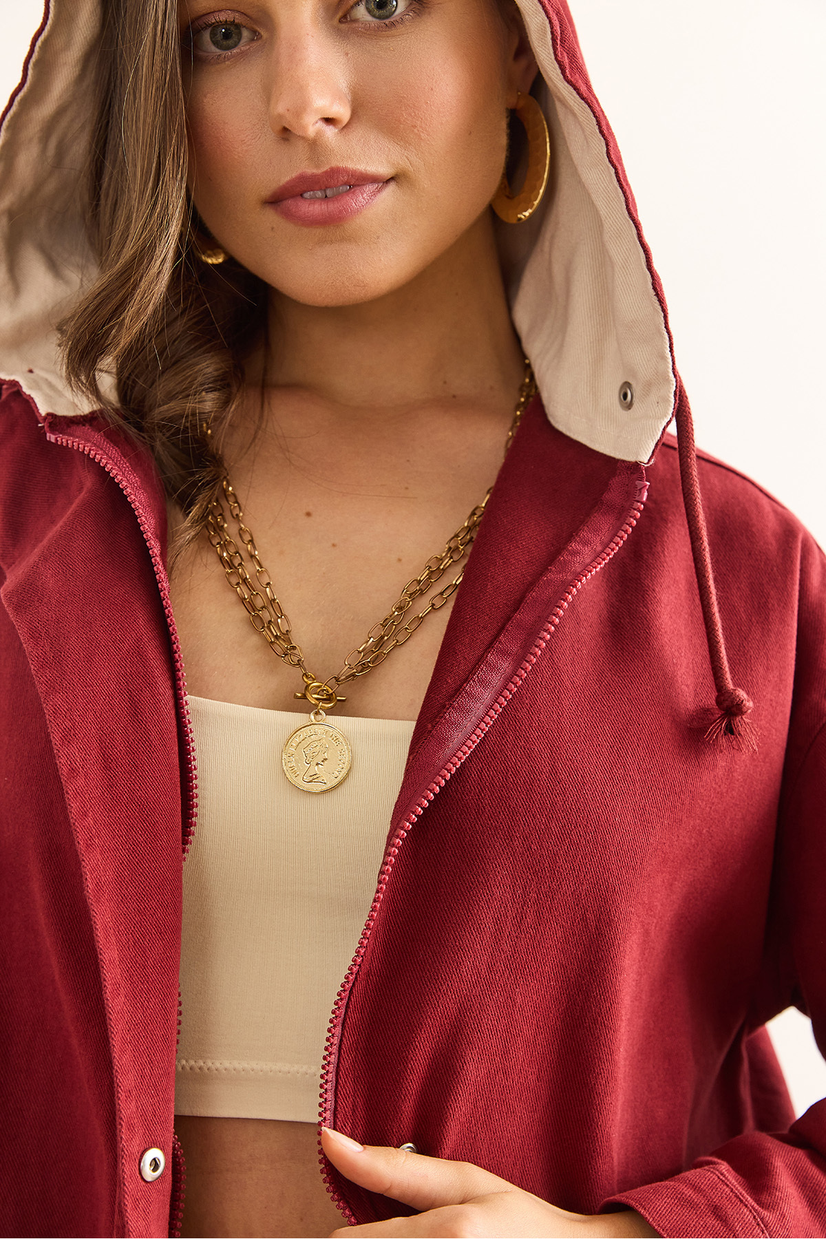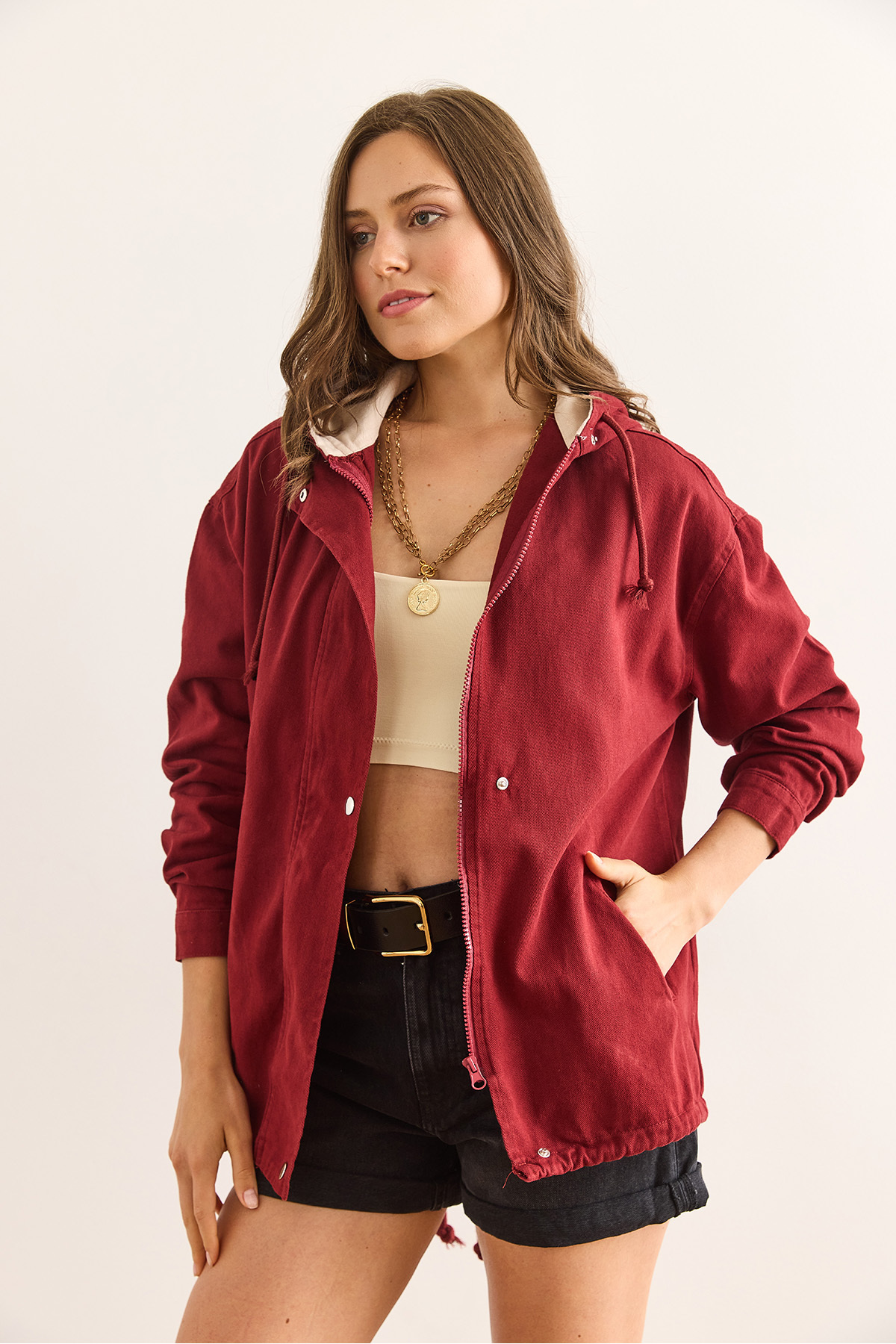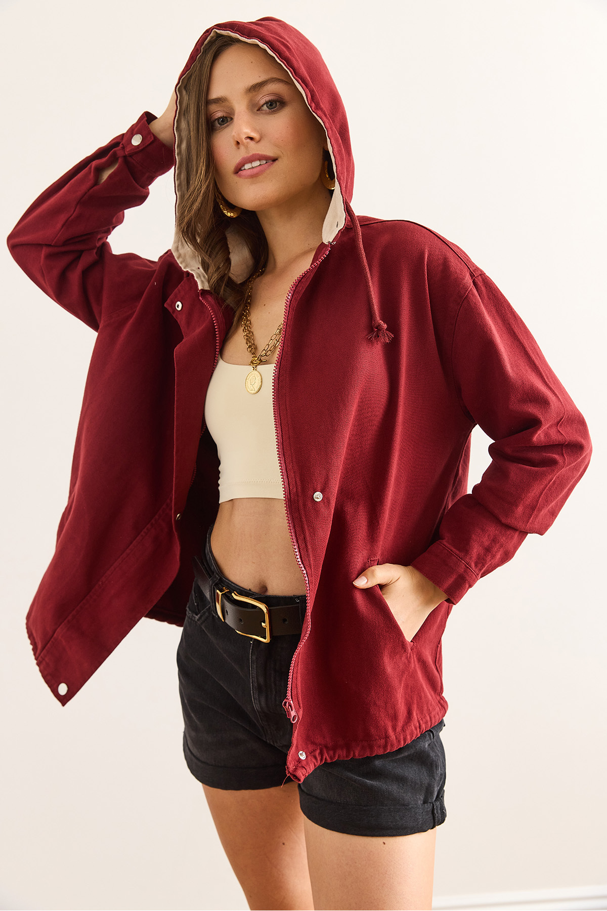 Kadın Bordo Taş Cepli Fermuarlı Çıtçıt Detaylı Gabardin Ceket CKT-19000419 Kadın Bordo Taş Cepli Fermuarlı Çıtçıt Detaylı Gabardin Ceket CKT-19000419 L