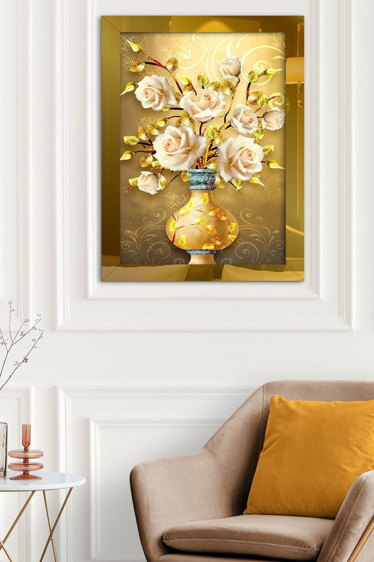 Gold Yapraklı Çiçek Retro Gümüş Çerçeveli Tablo Gold Yapraklı Çiçek Retro Gümüş Çerçeveli Tablo EVNMDPT-023 60 x 80