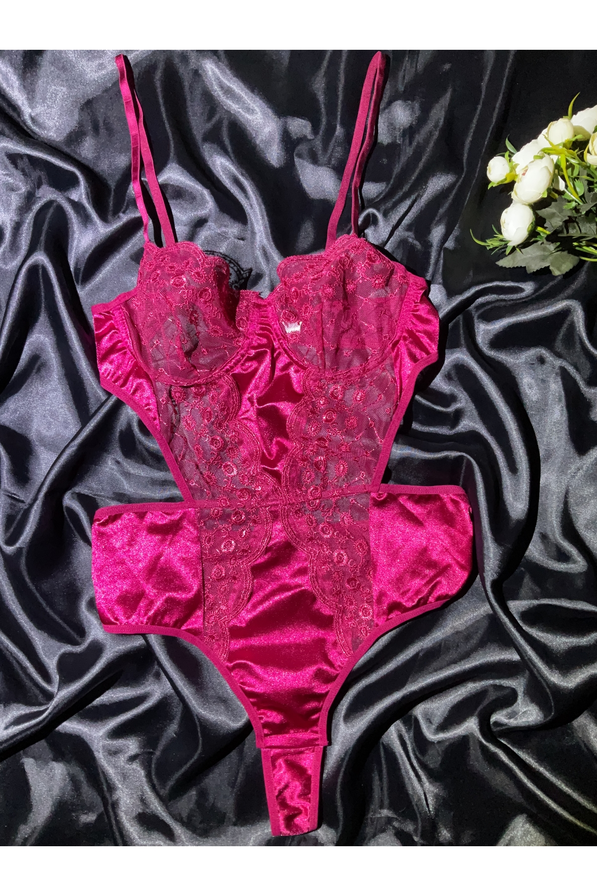Dantel ve Tül Detaylı Gecelik Takımı Dantel ve Tül Detaylı Gecelik Takımı V2205 XL