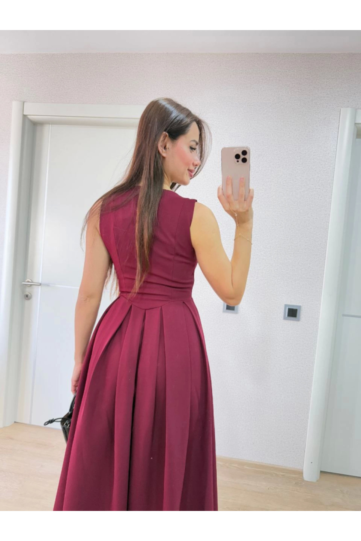 V Yaka Uzun Kolsuz Elbise- Bordo V Yaka Uzun Kolsuz Elbise- Bordo TR-8231 L