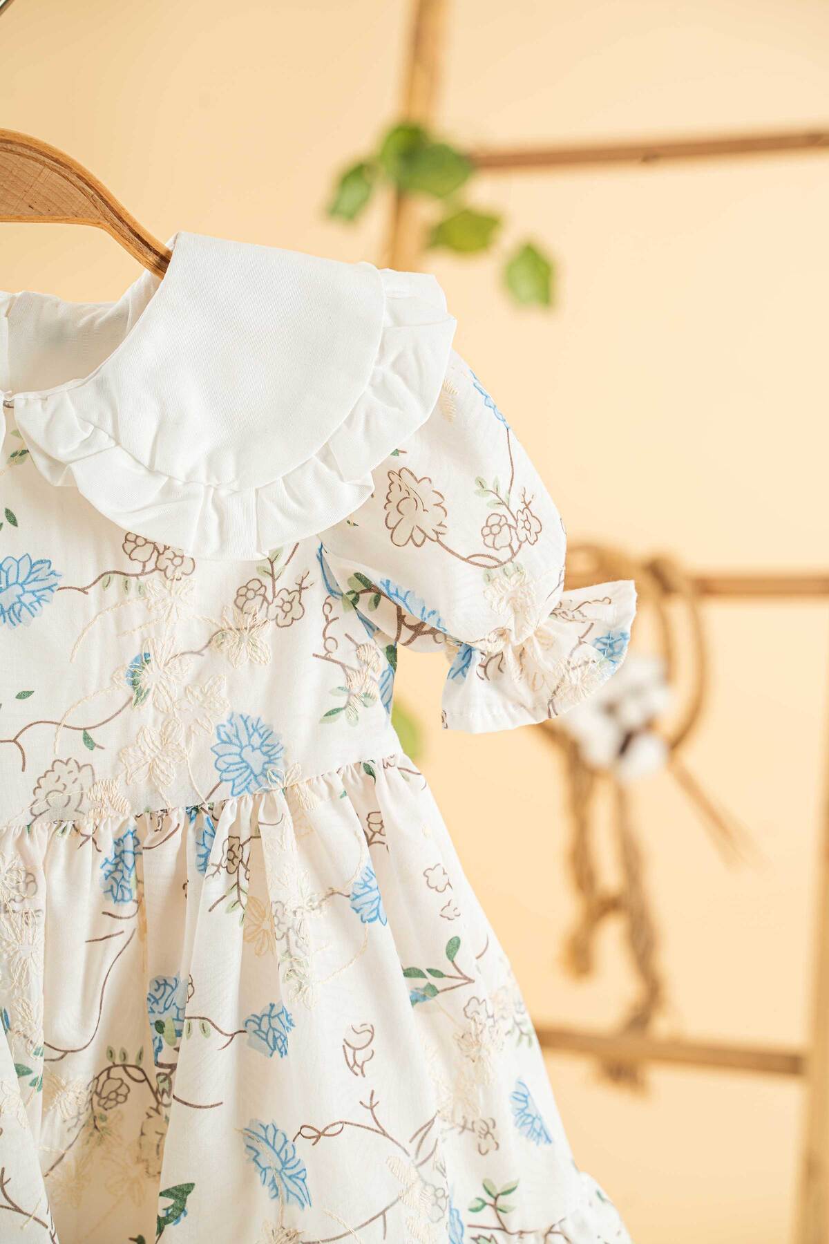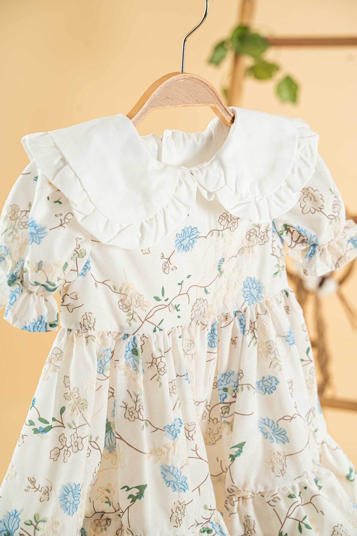 Mavi Çiçekli Brodeli Kısa Kol Kız Çocuk Elbise Mavi Çiçekli Brodeli Kısa Kol Kız Çocuk Elbise MC006 4-5 Yaş