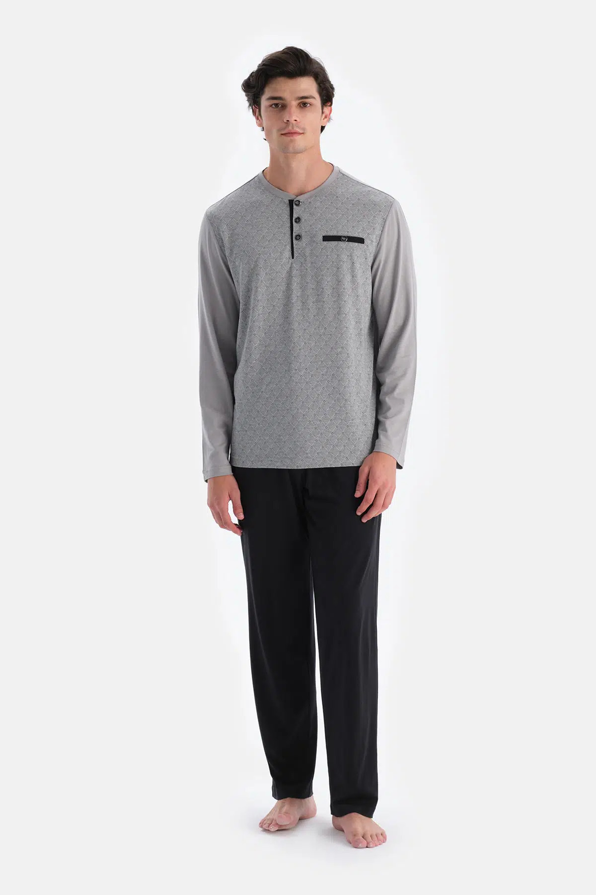 Indigo Pat Ve Fleto Cep Detaylı Tişört Pantolon Pijama Takımı Indigo Pat Ve Fleto Cep Detaylı Tişört Pantolon Pijama Takımı 25SM18632ME 2XL