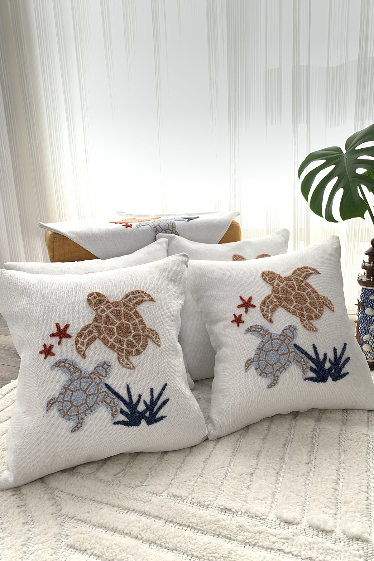 Volonte Kaplumbağalı Marin Desen Keten Dokuma Punch Nakış İşleme Bohem 4'lü Kırlent Kılıfı Volonte Kaplumbağalı Marin Desen Keten Dokuma Punch Nakış İşleme Bohem 4'lü Kırlent Kılıfı P1003DORTLU 40 x 40