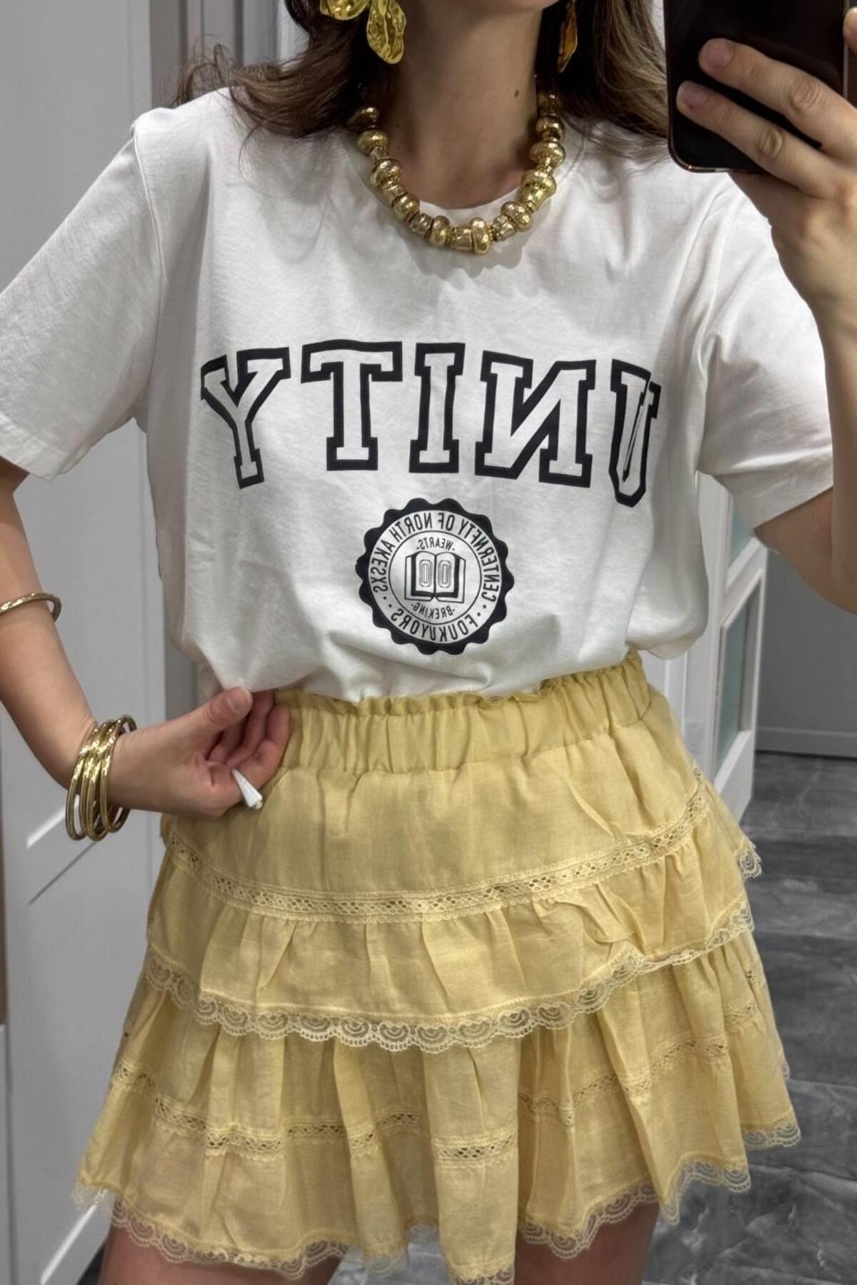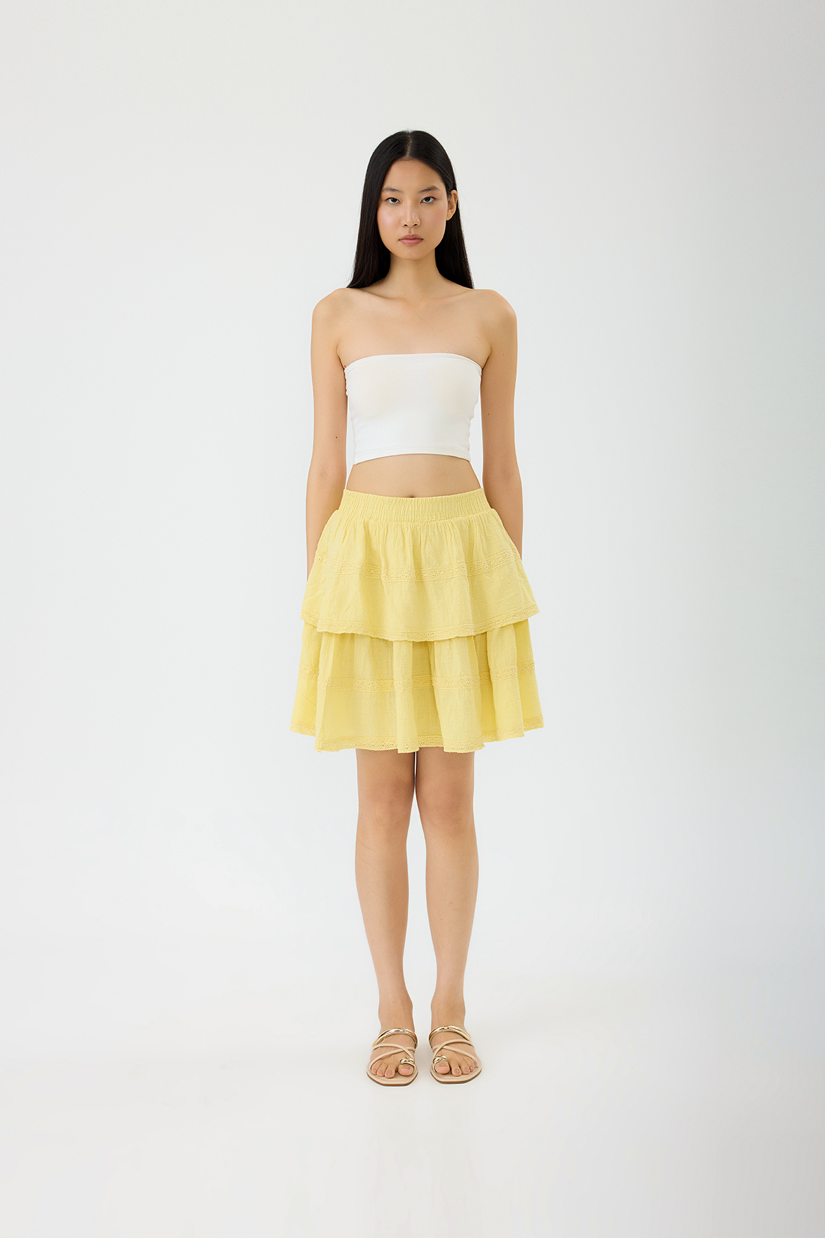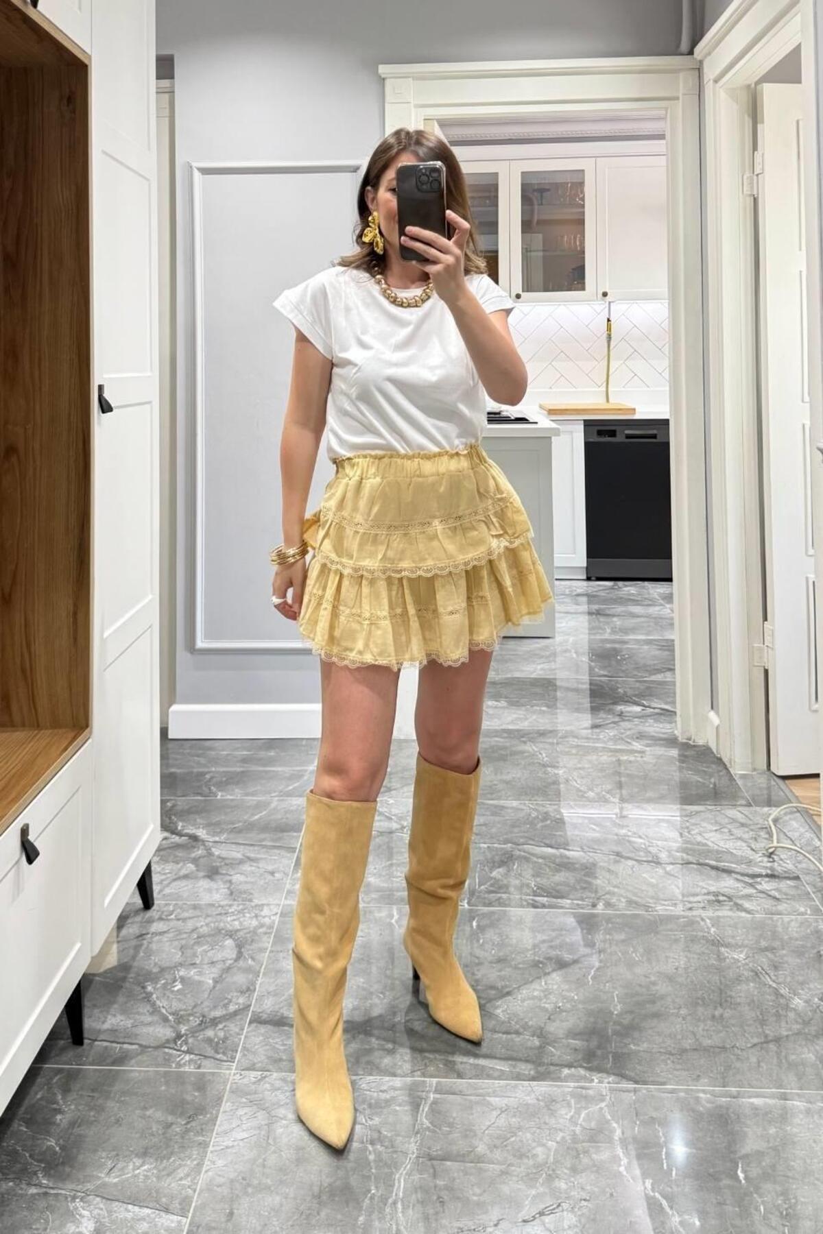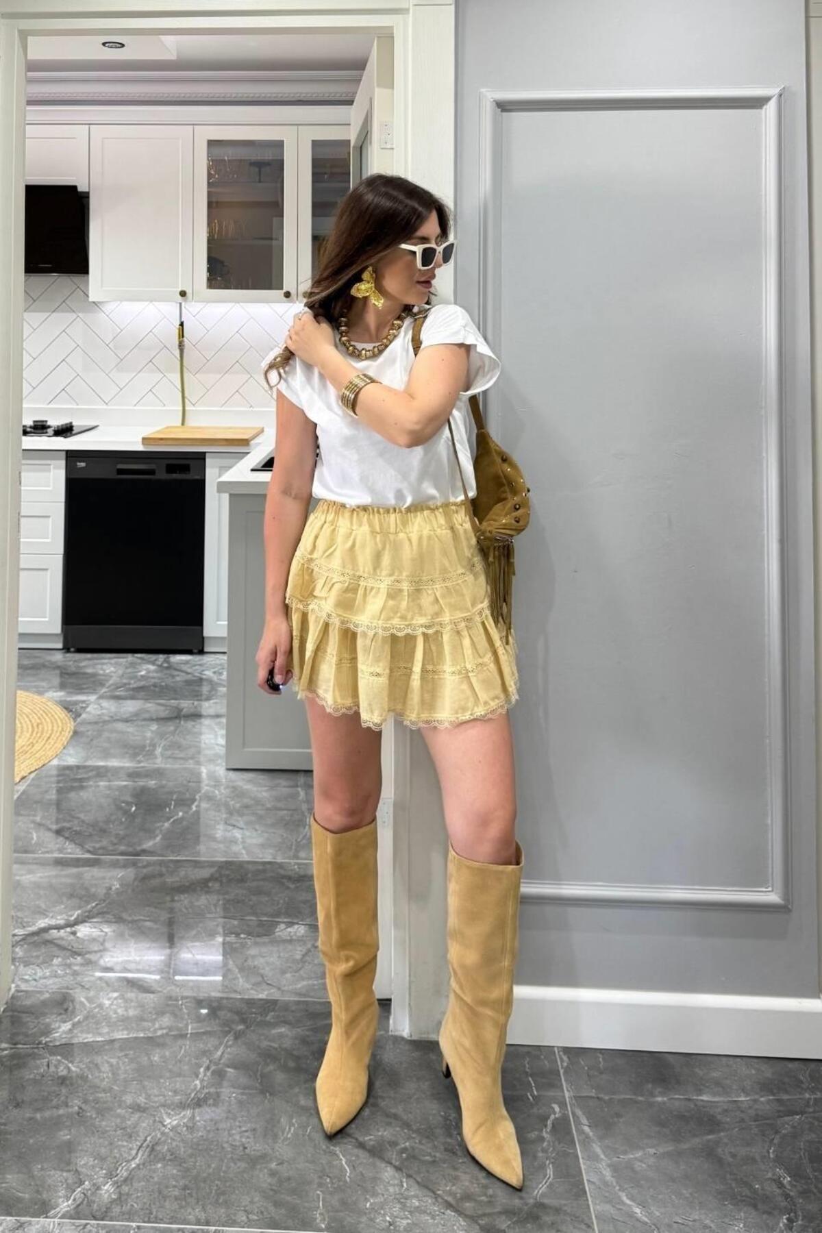 Dantel Geçisli Fırfırlı Mini Etek Sarı Dantel Geçisli Fırfırlı Mini Etek Sarı BA25IYAG017 L