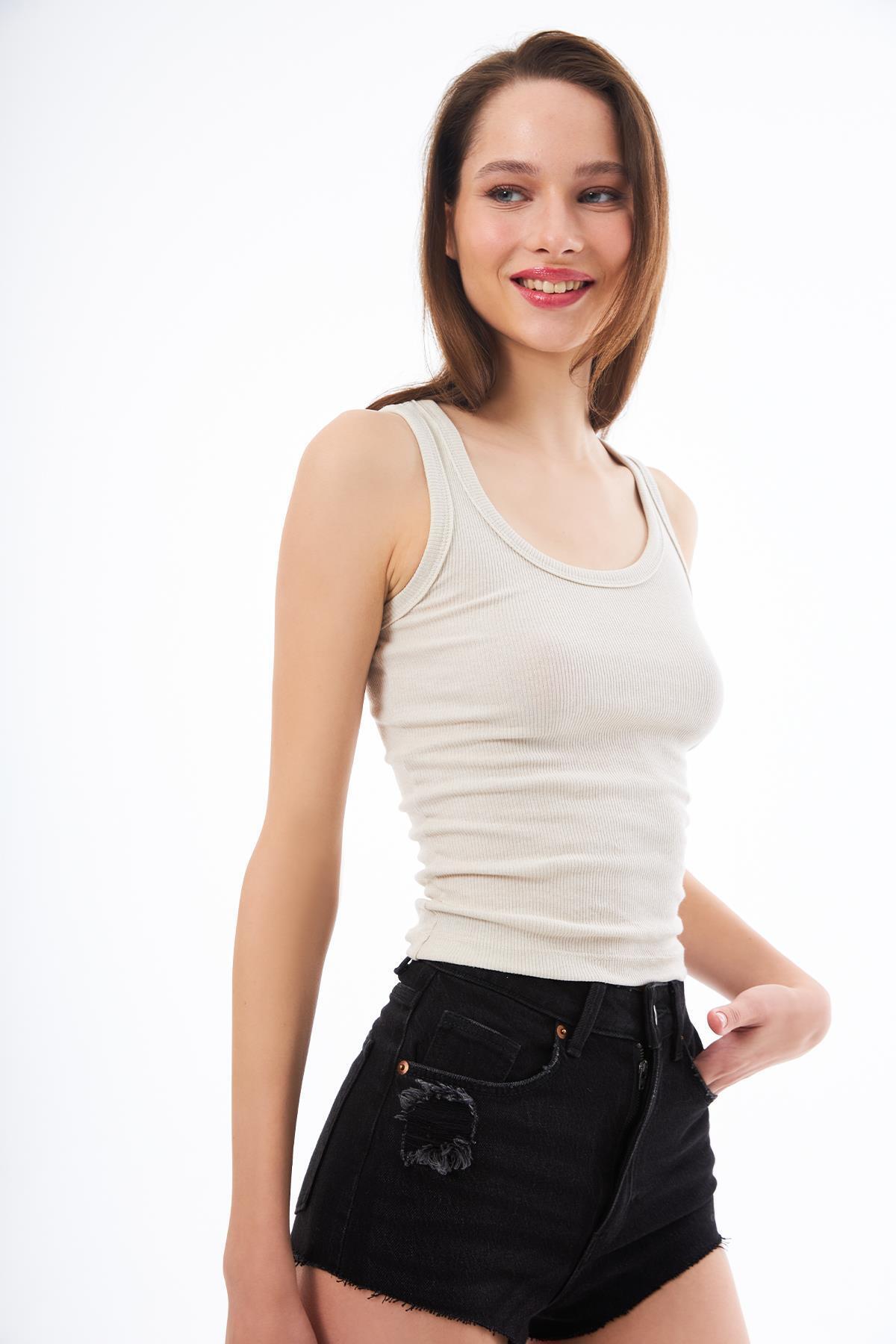 Bej Pamuklu Kalın Askılı Fitilli Kadın Atlet Bej Pamuklu Kalın Askılı Fitilli Kadın Atlet CTNHLL1761N XL