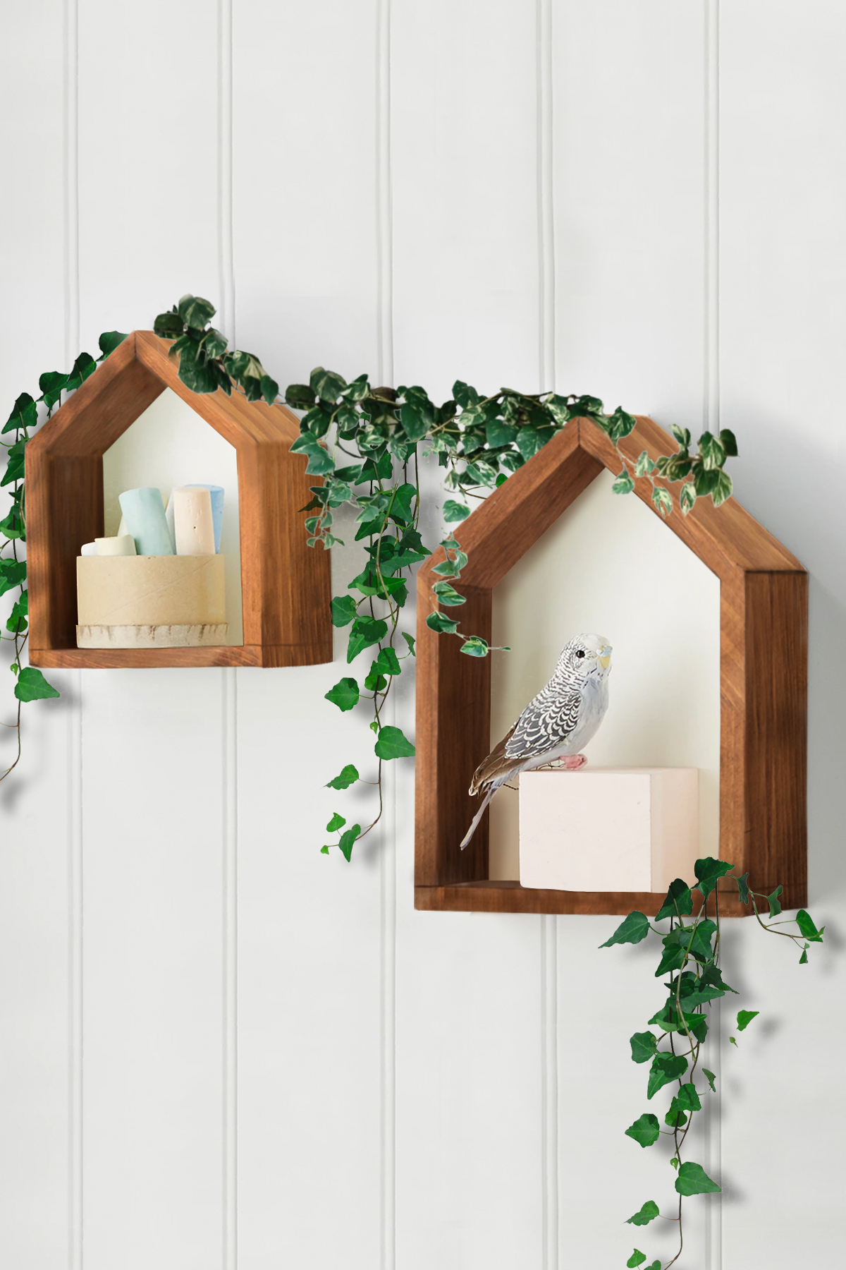 Ahşap Duvar Rafı 2li Ev Şeklinde Ahşap Duvar Rafı 2li Ev Şeklinde GRT8001064 تک سایز