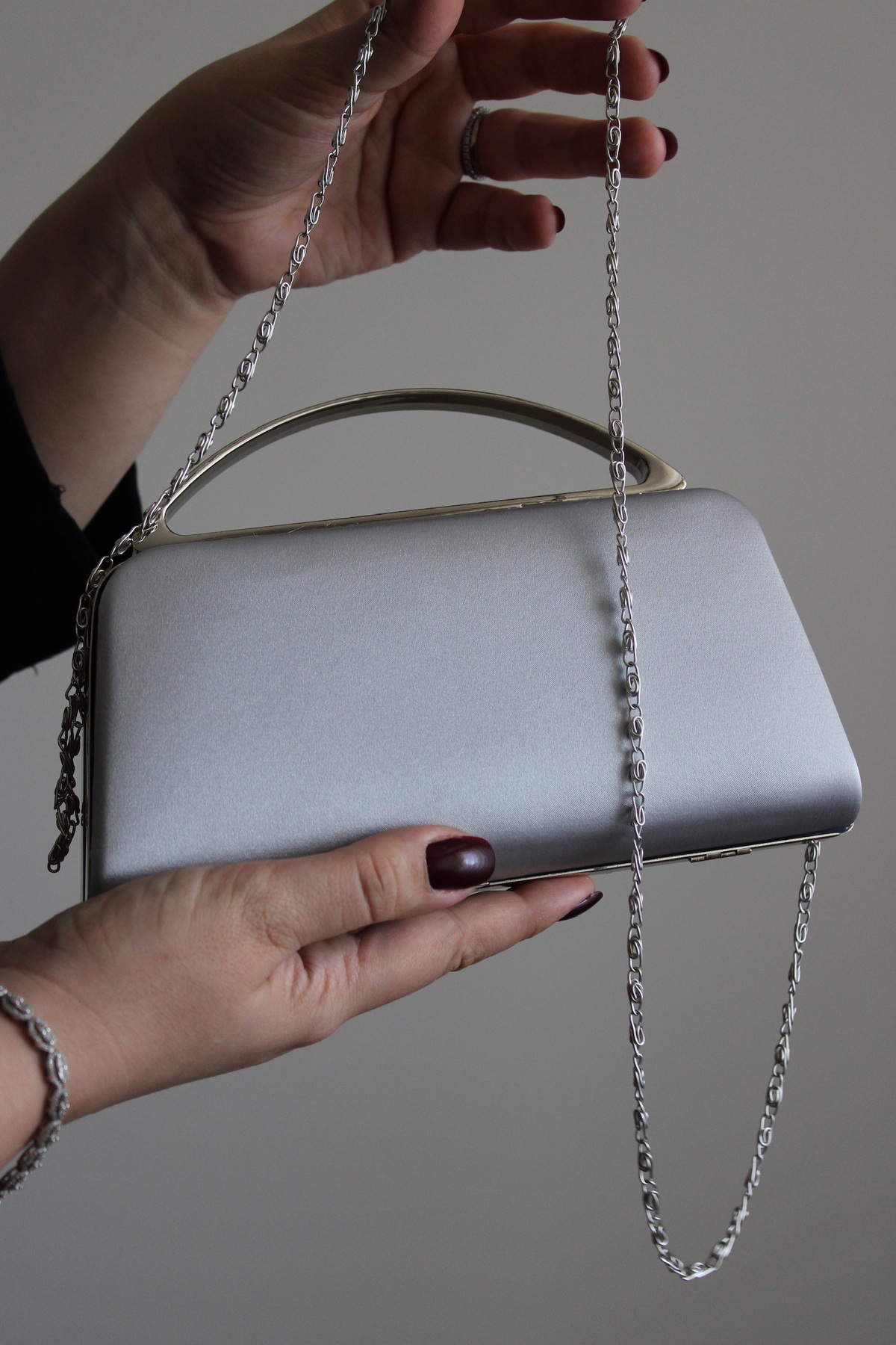 Gümüş Saten Suni Deri Elde ve Zincirli Kullanıma Uygun Abiye Çanta Gümüş Saten Suni Deri Elde ve Zincirli Kullanıma Uygun Abiye Çanta DTA0019 تک سایز