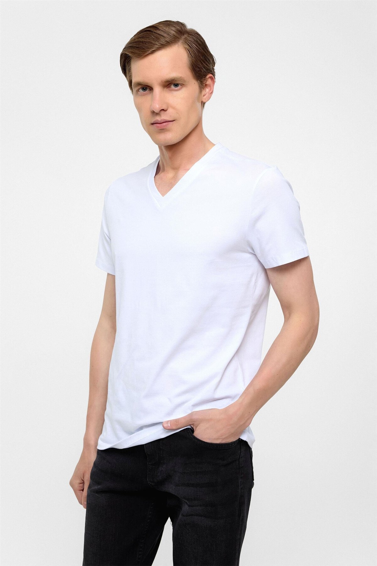 Beyaz Slim Fit Düz V Yaka Tişört Beyaz Slim Fit Düz V Yaka Tişört TS1014000445 2XL