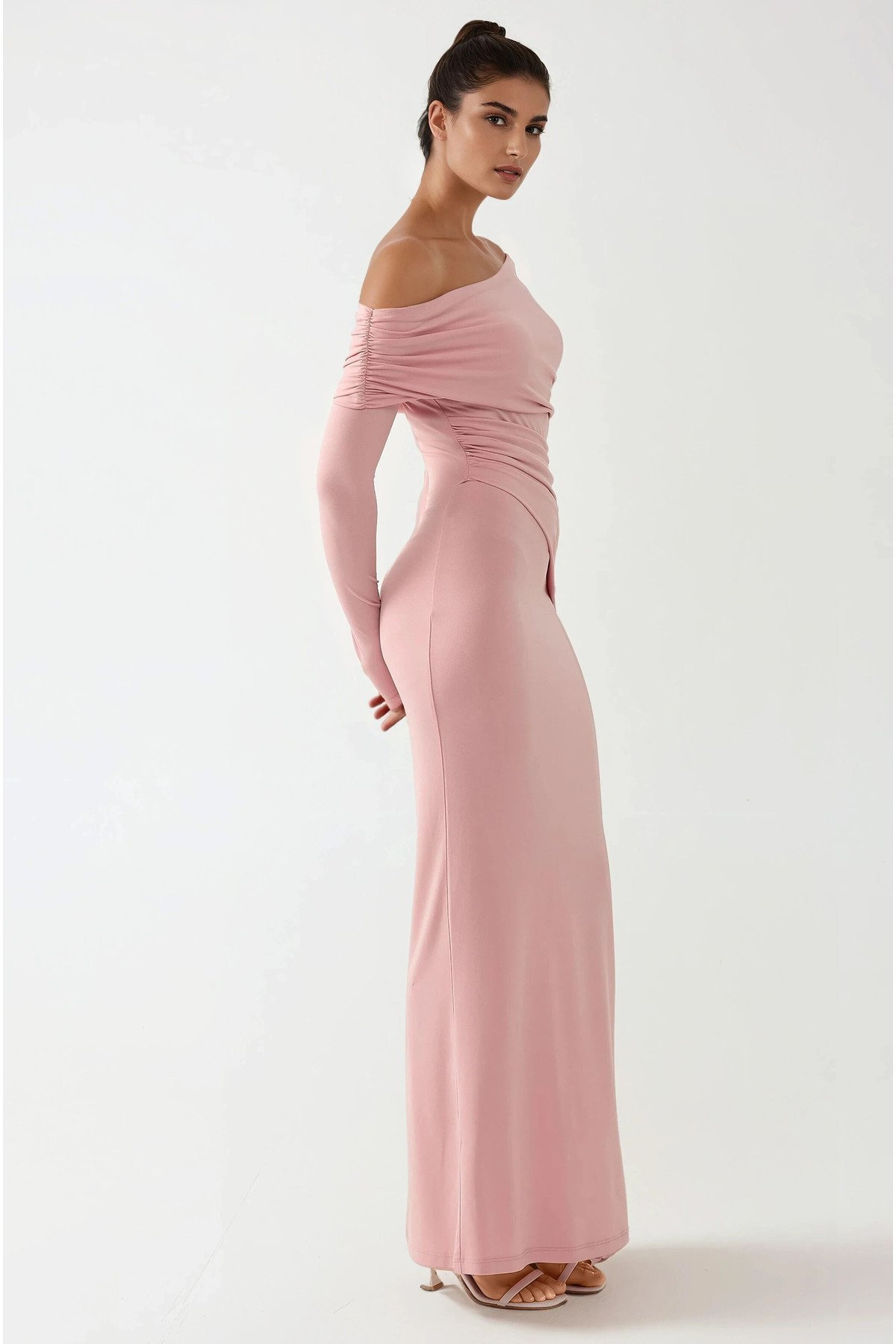 Asimetrik Yaka Vücuda Oturan Maxi Elbise Asimetrik Yaka Vücuda Oturan Maxi Elbise M98HOY7I XL