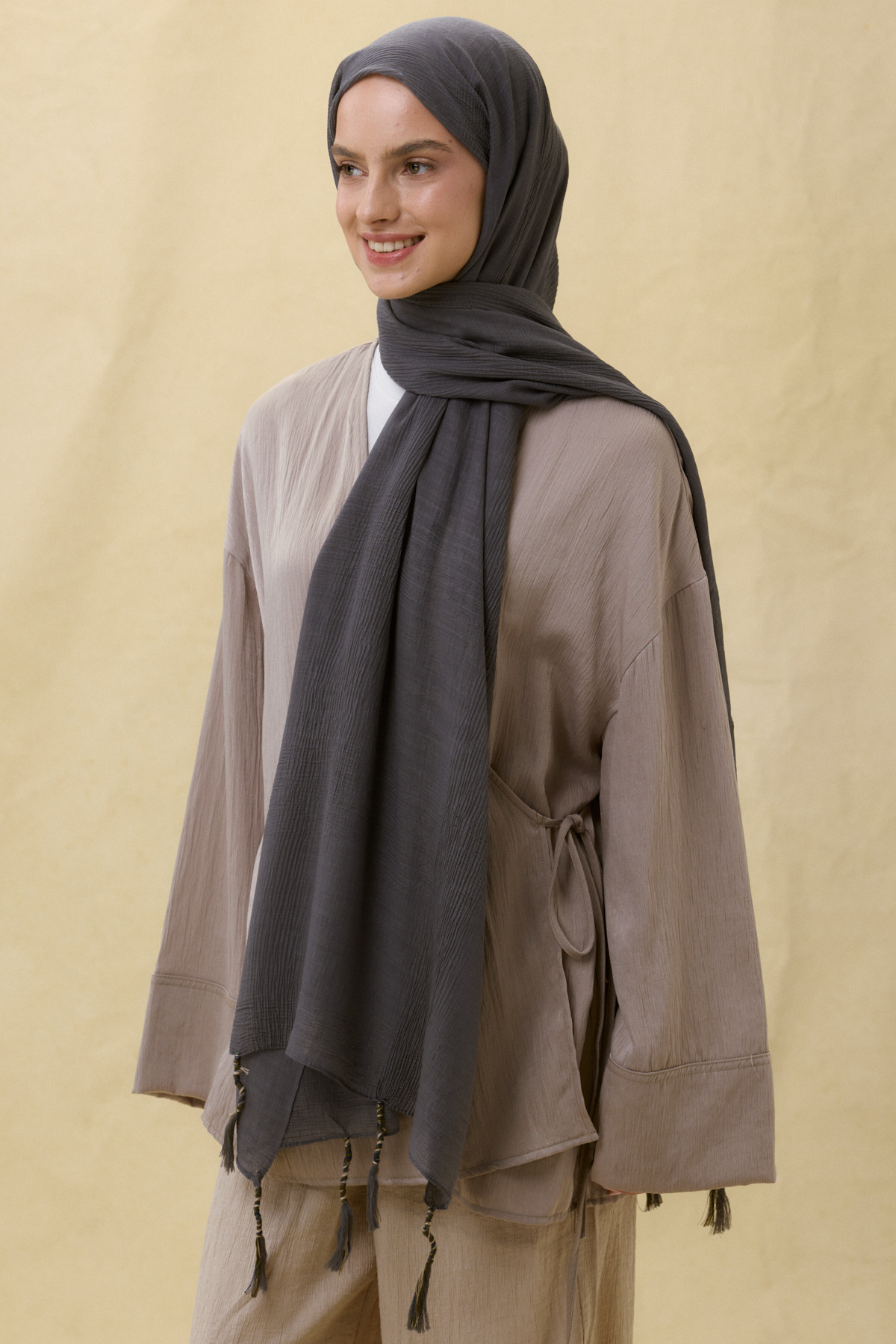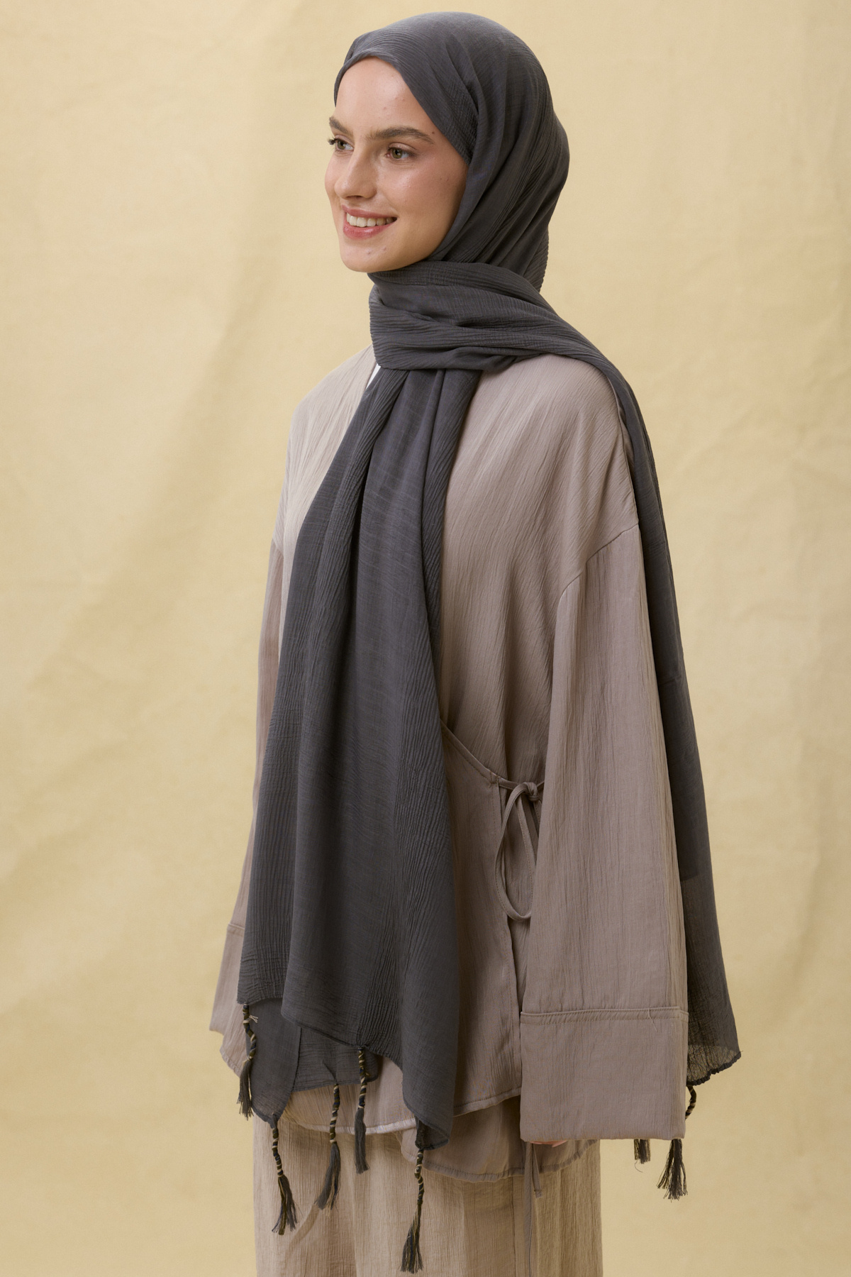 BRICE FÜME UZUN SAÇAK PÜSKÜLLÜ PAMUKLU ŞAL BRICE FÜME UZUN SAÇAK PÜSKÜLLÜ PAMUKLU ŞAL BRICE-FÜME 200 x 100