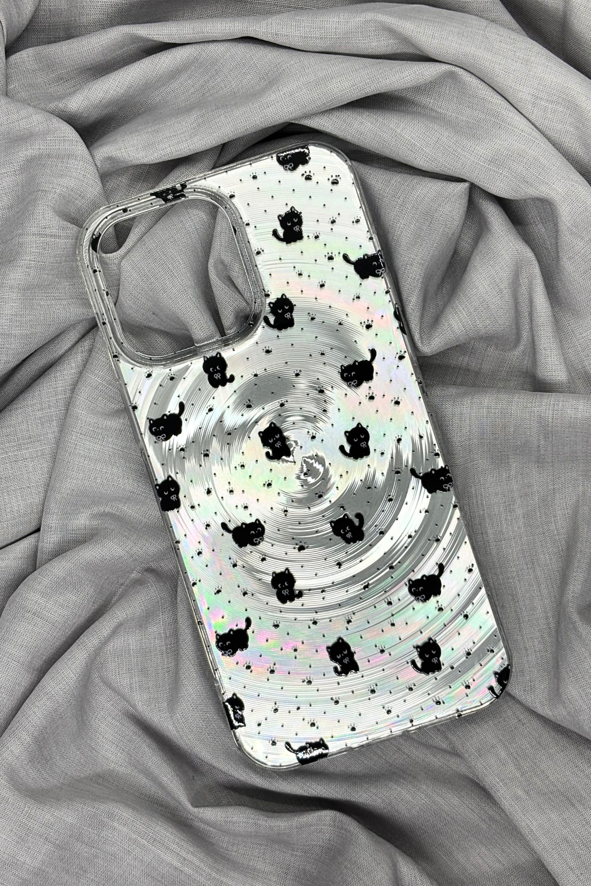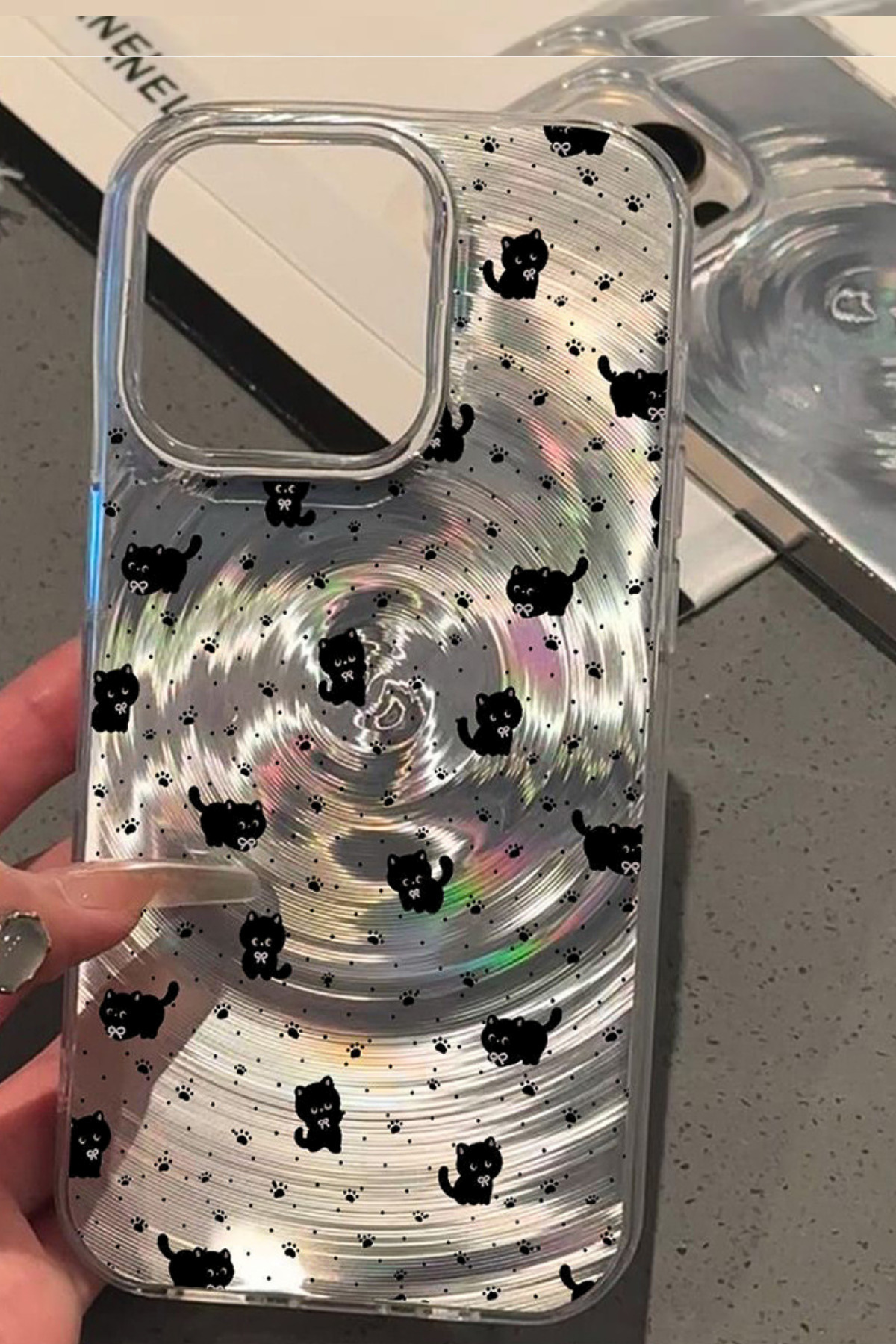 iPhone 13/14 Uyumlu Sevimli Siyah Kedi ve Pati Desenli Hologramlı IMD Premium Telefon Kılıfı iPhone 13/14 Uyumlu Sevimli Siyah Kedi ve Pati Desenli Hologramlı IMD Premium Telefon Kılıfı IPH1314CASE تک سایز