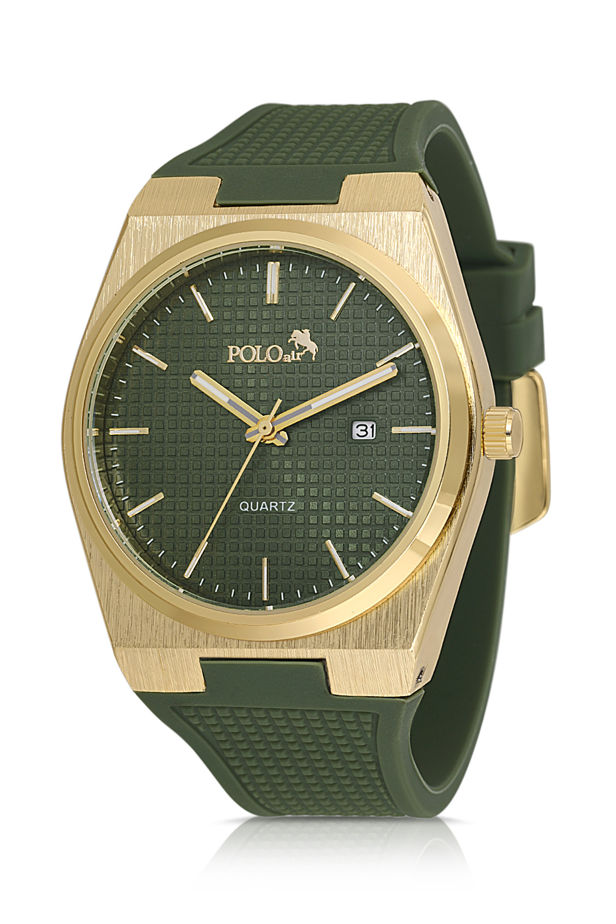 Silikon Kordon Takvimli Erkek Kol Saati Koyu Yeşil Gold Renk PL-0985E4x Silikon Kordon Takvimli Erkek Kol Saati Koyu Yeşil Gold Renk PL-0985E4x PL-0985Ex تک سایز
