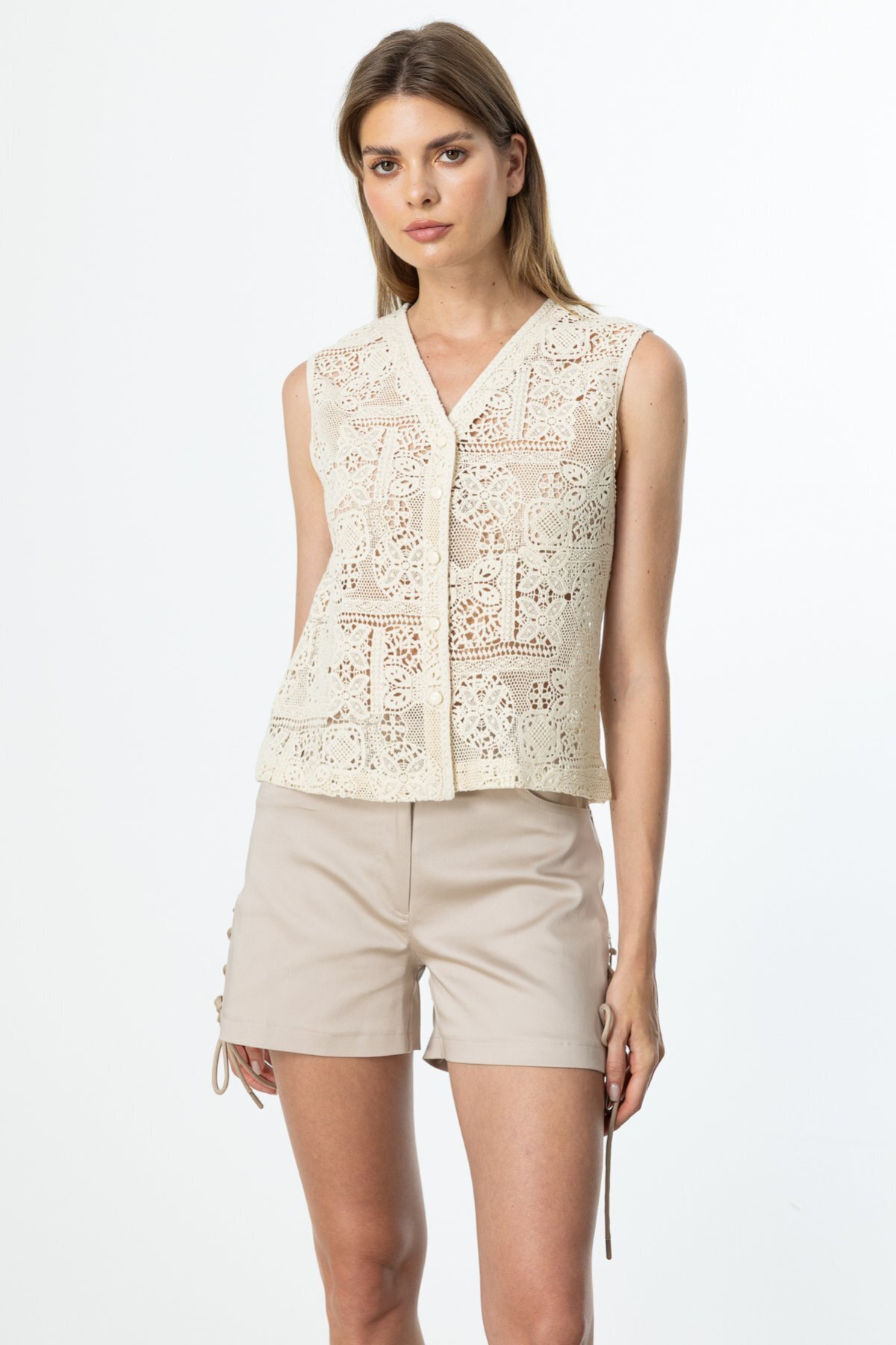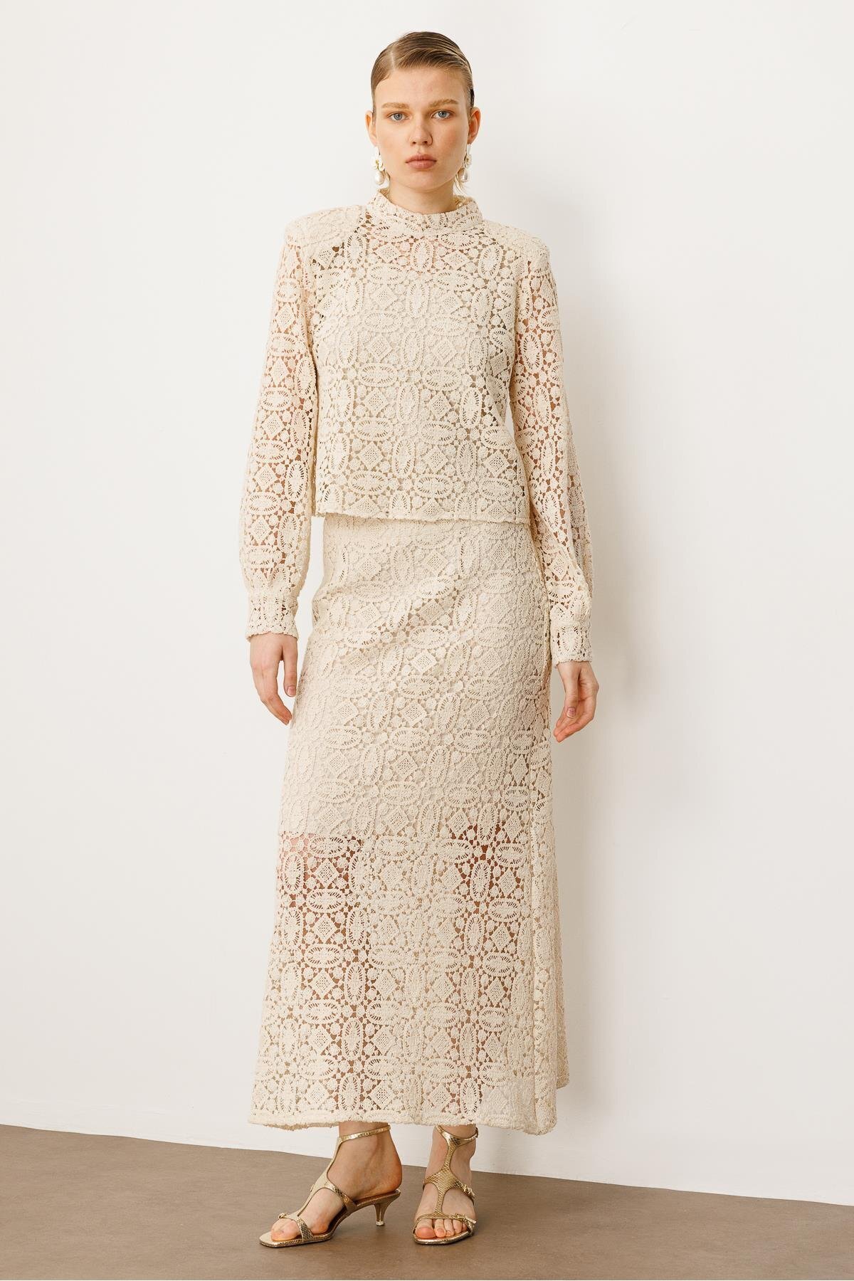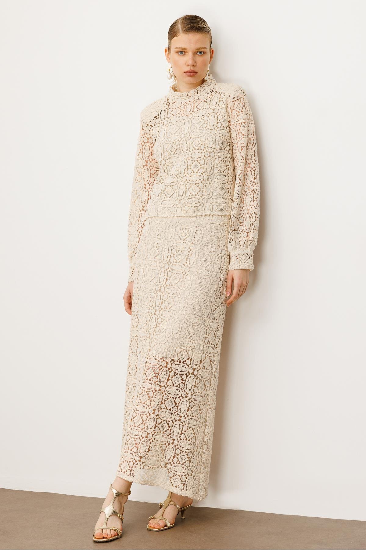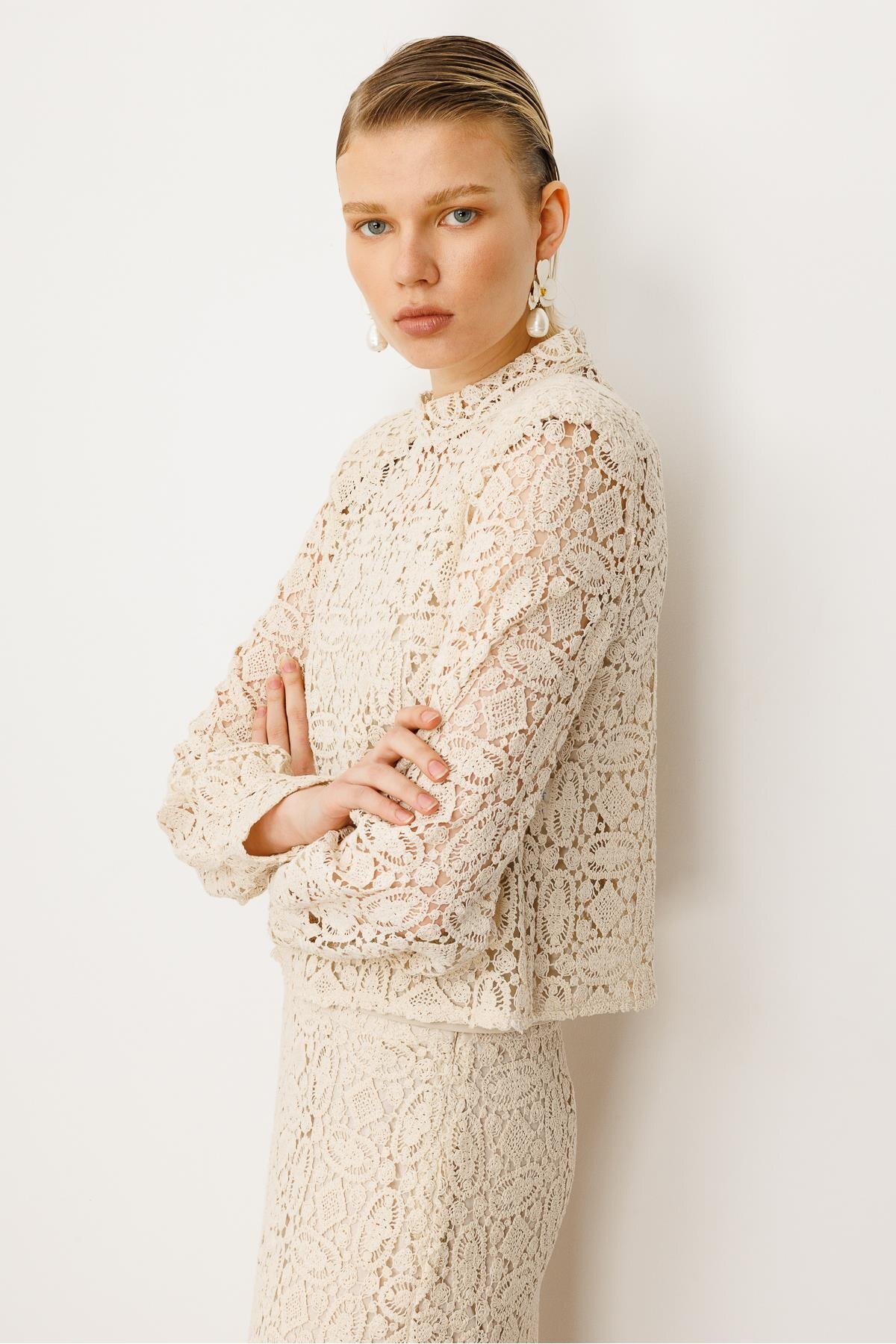 Modailgi Hakim Yaka Arka Fermuar Kapamalı Güpür Dantelli Ceket Taş Modailgi Hakim Yaka Arka Fermuar Kapamalı Güpür Dantelli Ceket Taş ILG251CKT70081 44