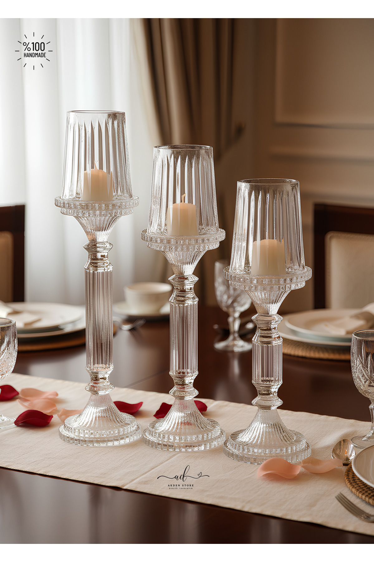 3'lü Lüks Kristal Ayaklı Mumluk 3'lü Lüks Kristal Ayaklı Mumluk 3lü Mumluk تک سایز