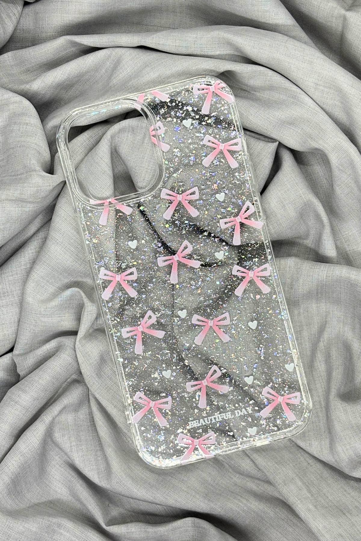 iPhone 16 Pro Uyumlu Pembe Fiyonk ve Beyaz Kalpli Simli Şeffaf Parıltılı Premium Telefon Kılıfı iPhone 16 Pro Uyumlu Pembe Fiyonk ve Beyaz Kalpli Simli Şeffaf Parıltılı Premium Telefon Kılıfı IPH16PCASE تک سایز
