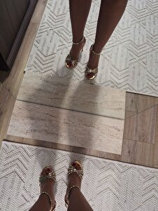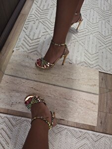 Kadın Altın Taşlı Yüksek İnce Topuklu Sandalet 25SFE3908TS Kadın Altın Taşlı Yüksek İnce Topuklu Sandalet 25SFE3908TS 40