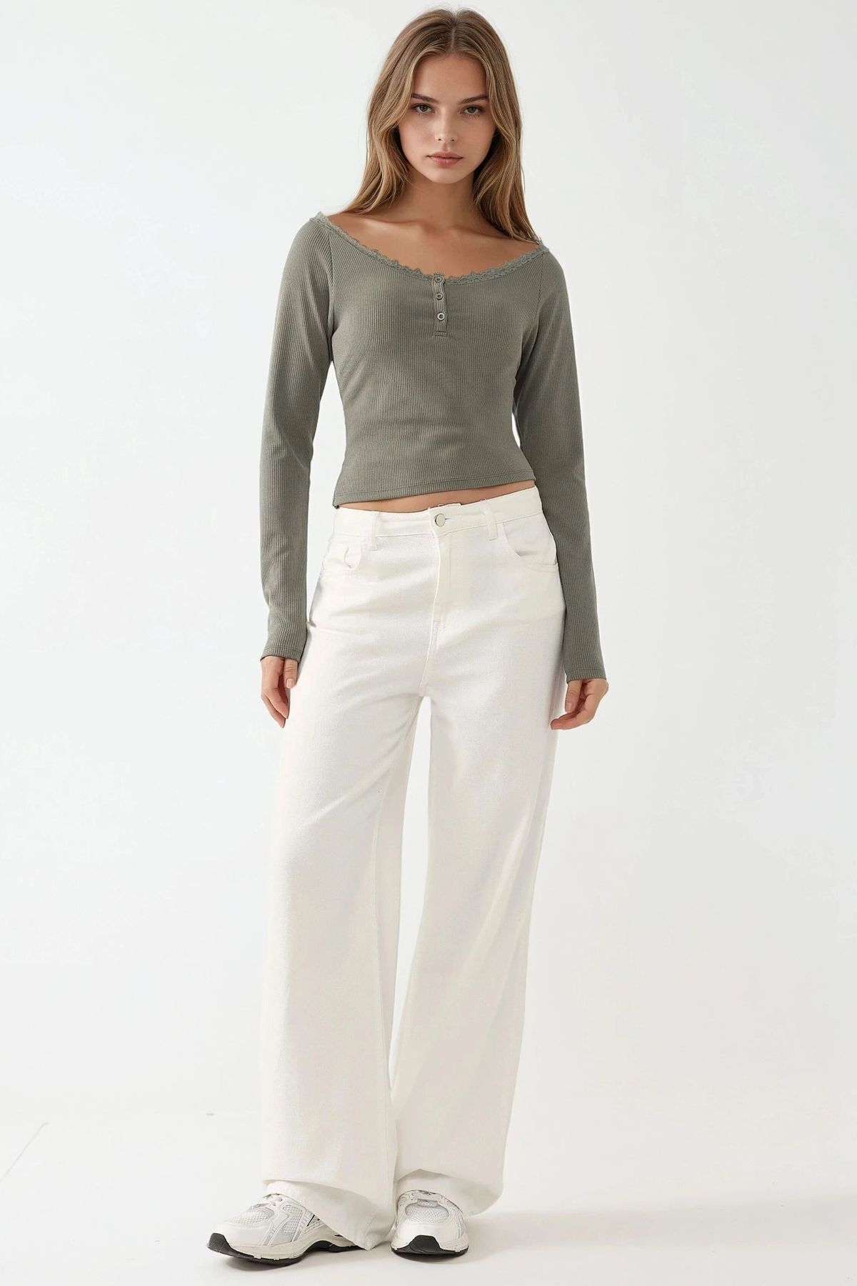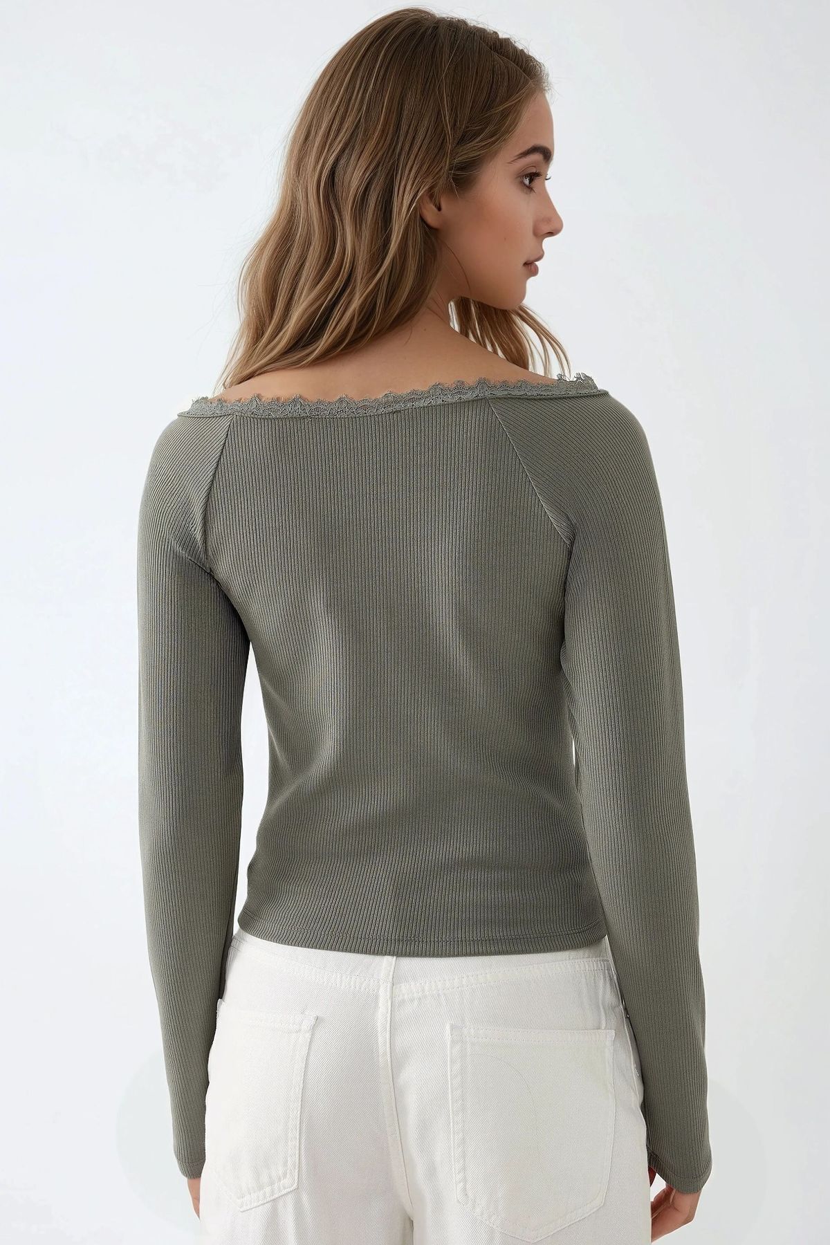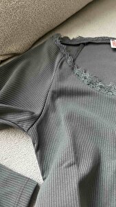 Dantel Şerit Detaylı Uzun Kollu Slim Fit Üst Dantel Şerit Detaylı Uzun Kollu Slim Fit Üst M6YT0KDE XL