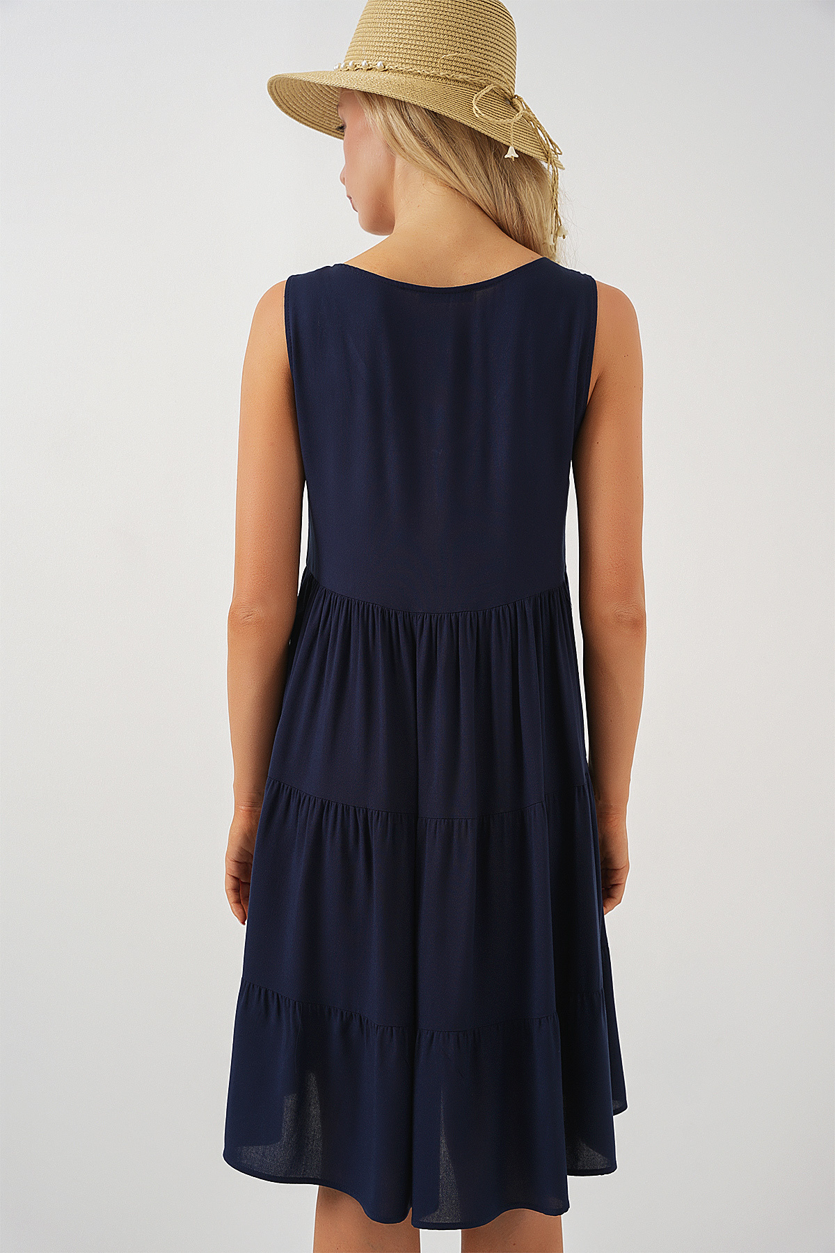 Kadın Sıfır Kol Düğmeli Kısa Elbise 2571 - Lacivert Kadın Sıfır Kol Düğmeli Kısa Elbise 2571 - Lacivert 2571BGD19 42