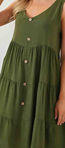 Kadın Sıfır Kol Düğmeli Kısa Elbise 2571 - Haki Kadın Sıfır Kol Düğmeli Kısa Elbise 2571 - Haki 2571BGD19 42