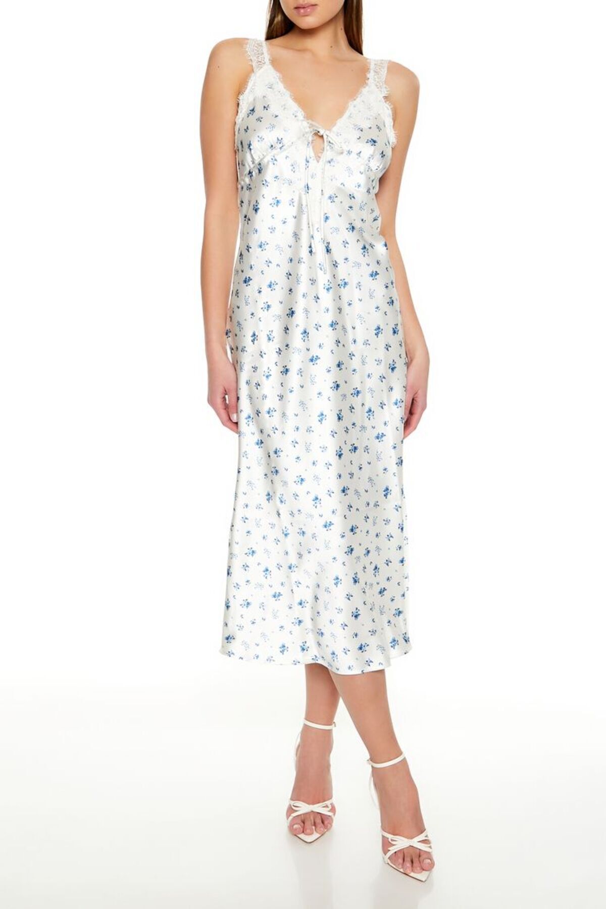 Dantel Kenarlı Çiçek Desenli Midi Elbise Dantel Kenarlı Çiçek Desenli Midi Elbise 01361415 L