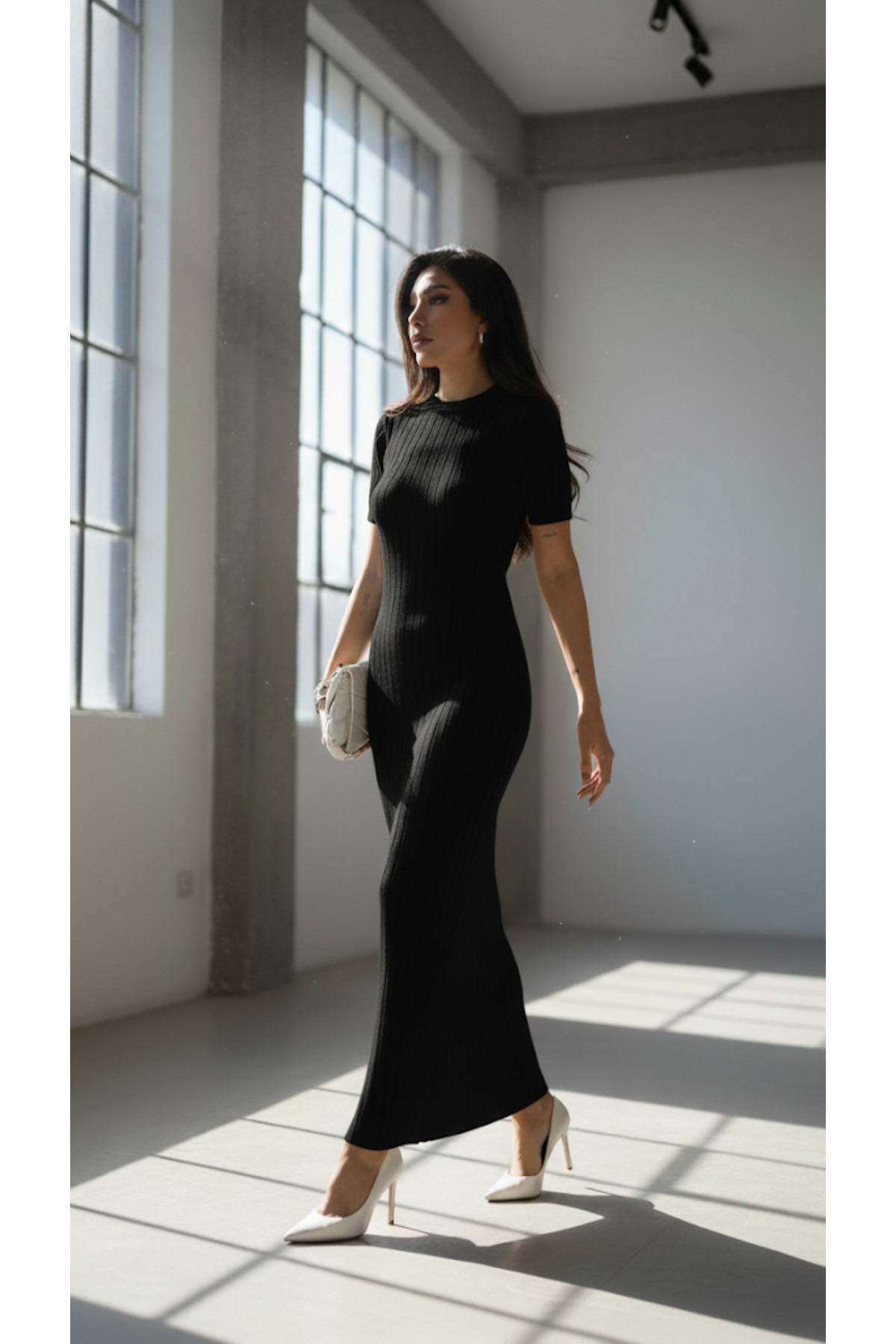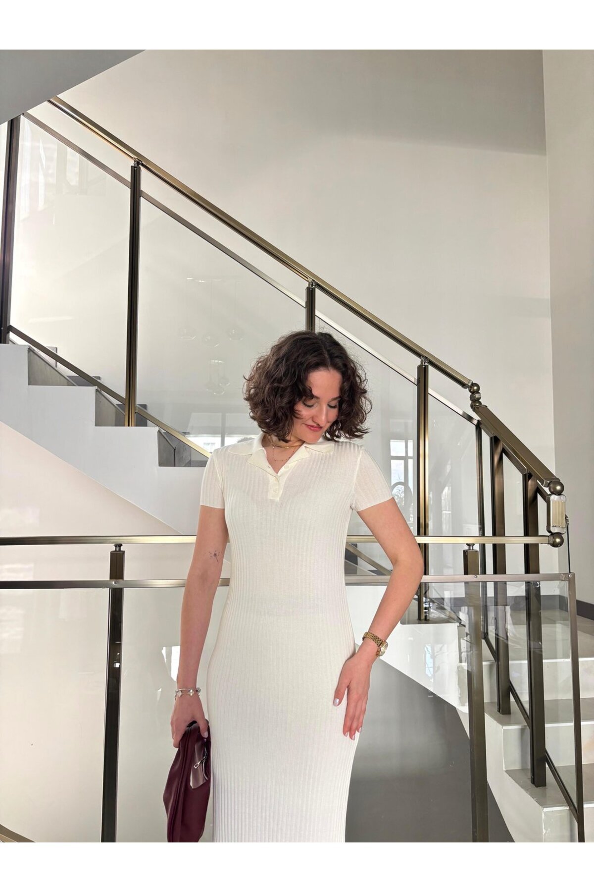 Polo Yaka Fitilli Triko Elbise Polo Yaka Fitilli Triko Elbise SK-13080 Standart